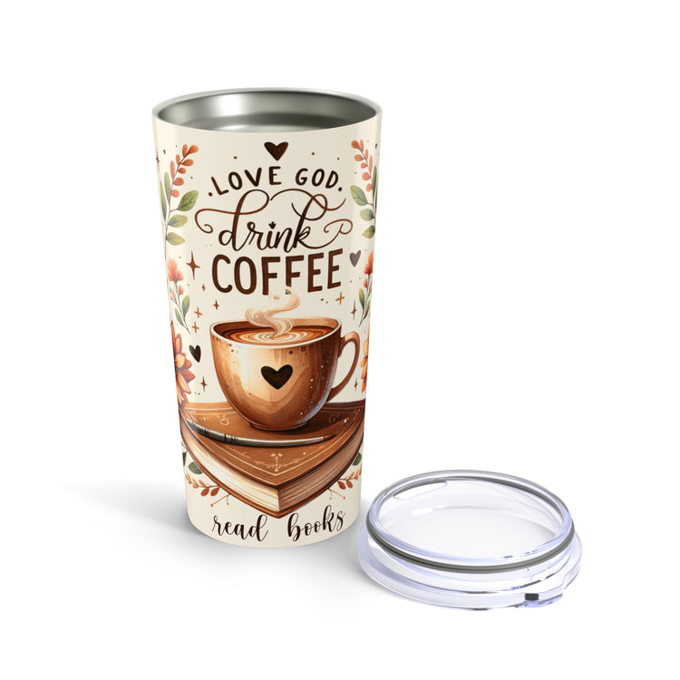 Love God Drink Coffee Read Books Fall/Autumn 20 oz Tumbler, Fall Watercolor Hand-Drawn Travel Cup