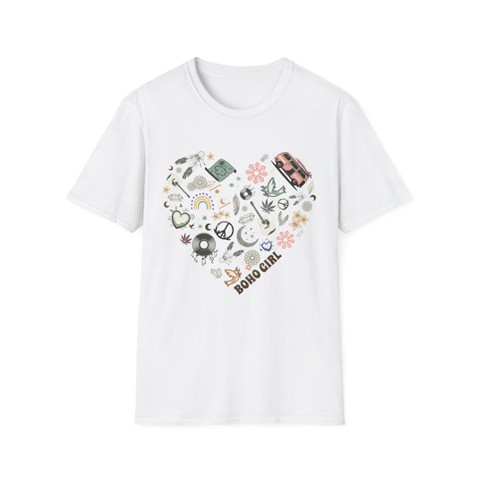 Boho Heart T-Shirt, Unisex Graphic Tee, Casual Everyday Wear, Festival Clothing, Gift for Nature Lovers, Hippy/Groovy Vibes