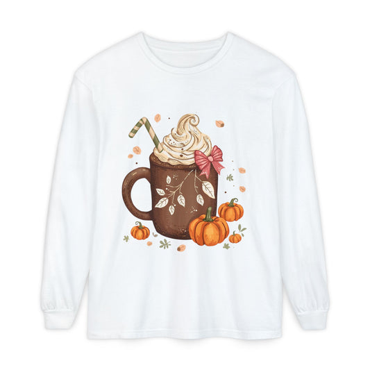 Cute Fall Pumpkin Spice Long Sleeve T-Shirt, Pumpkin Coffee Tee, Autumn Fashion, Cozy Gift for her, Thanksgiving Shirt