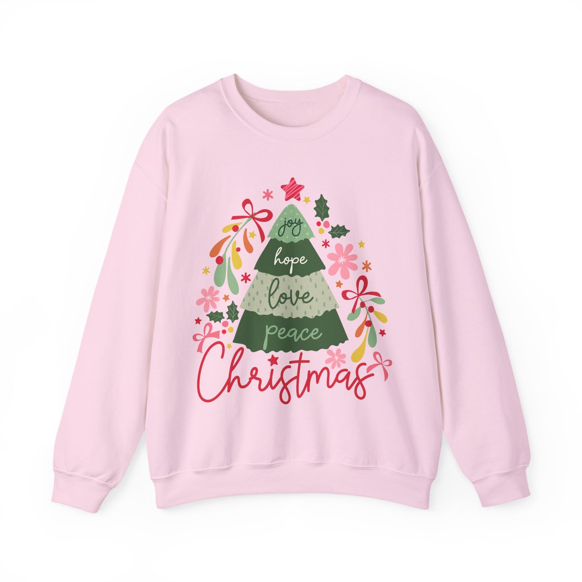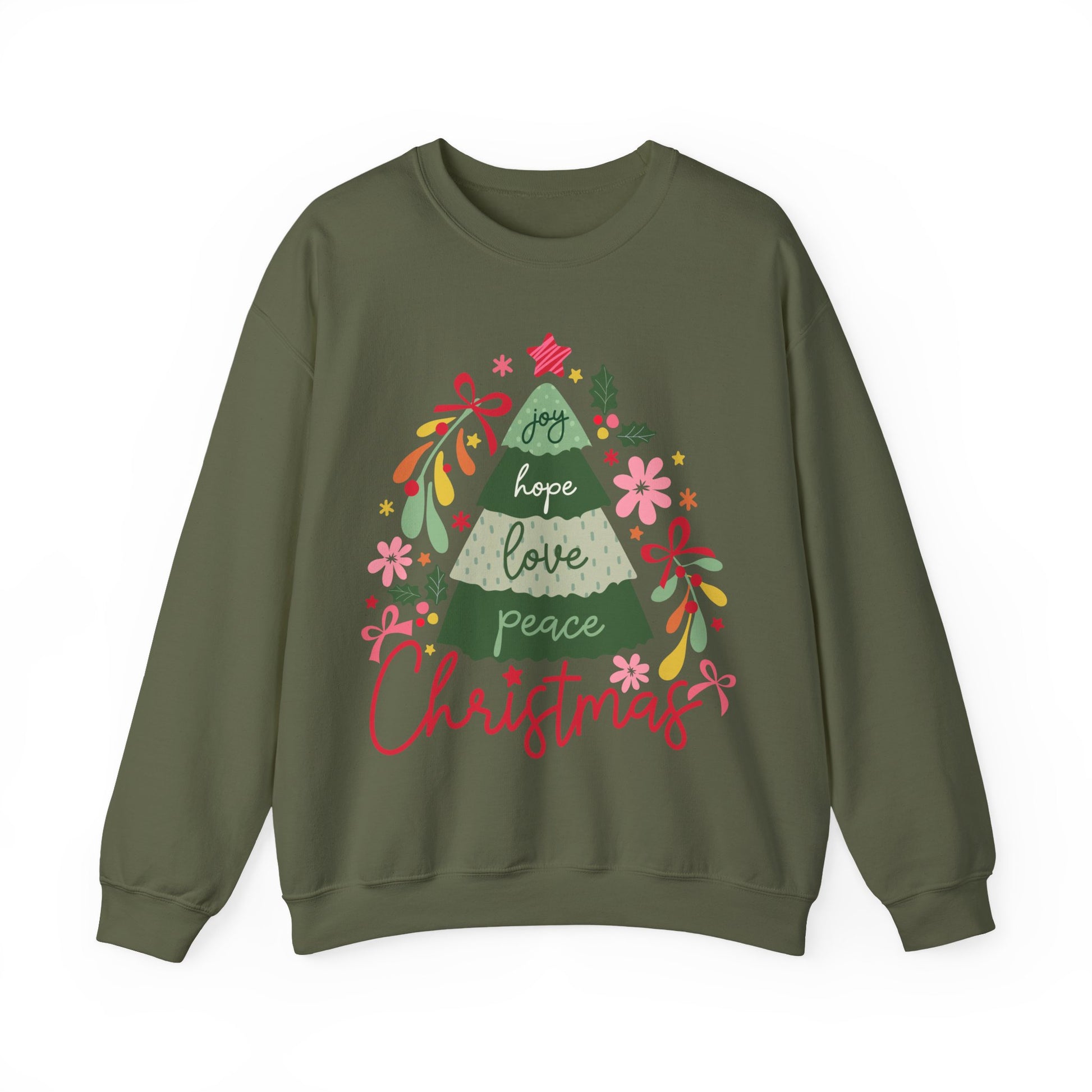 Christmas Tree Sweatshirt — Joy Hope Love Peace Holiday Pullover