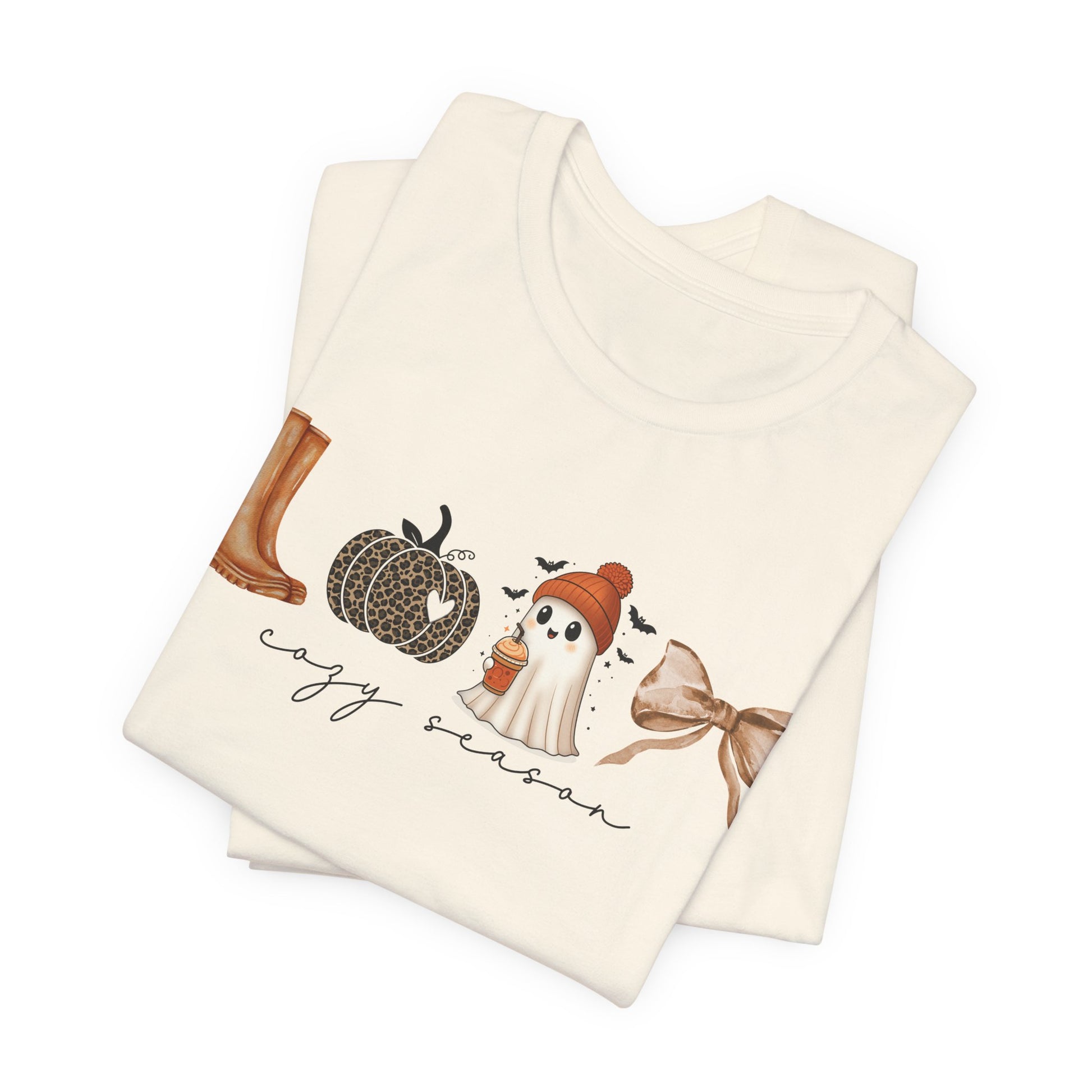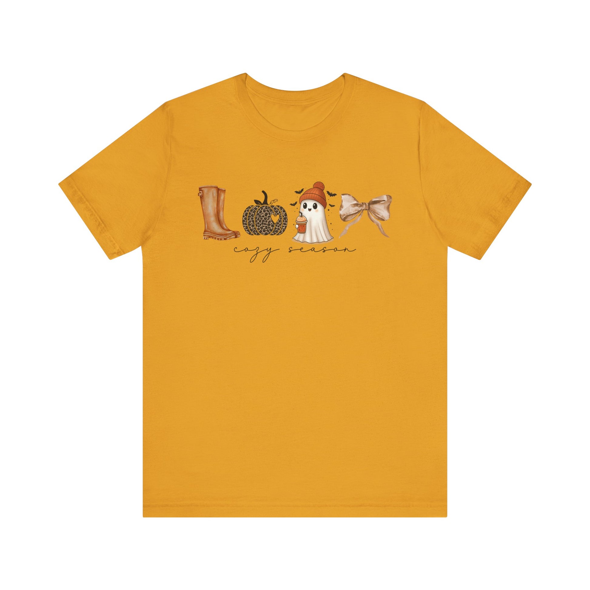 'Cozy Season' Autumn Vibes Tee, Fall Shirt, Cozy Season Top, Pumpkin, Ghost, Boots, Bow, Halloween Casual Wear