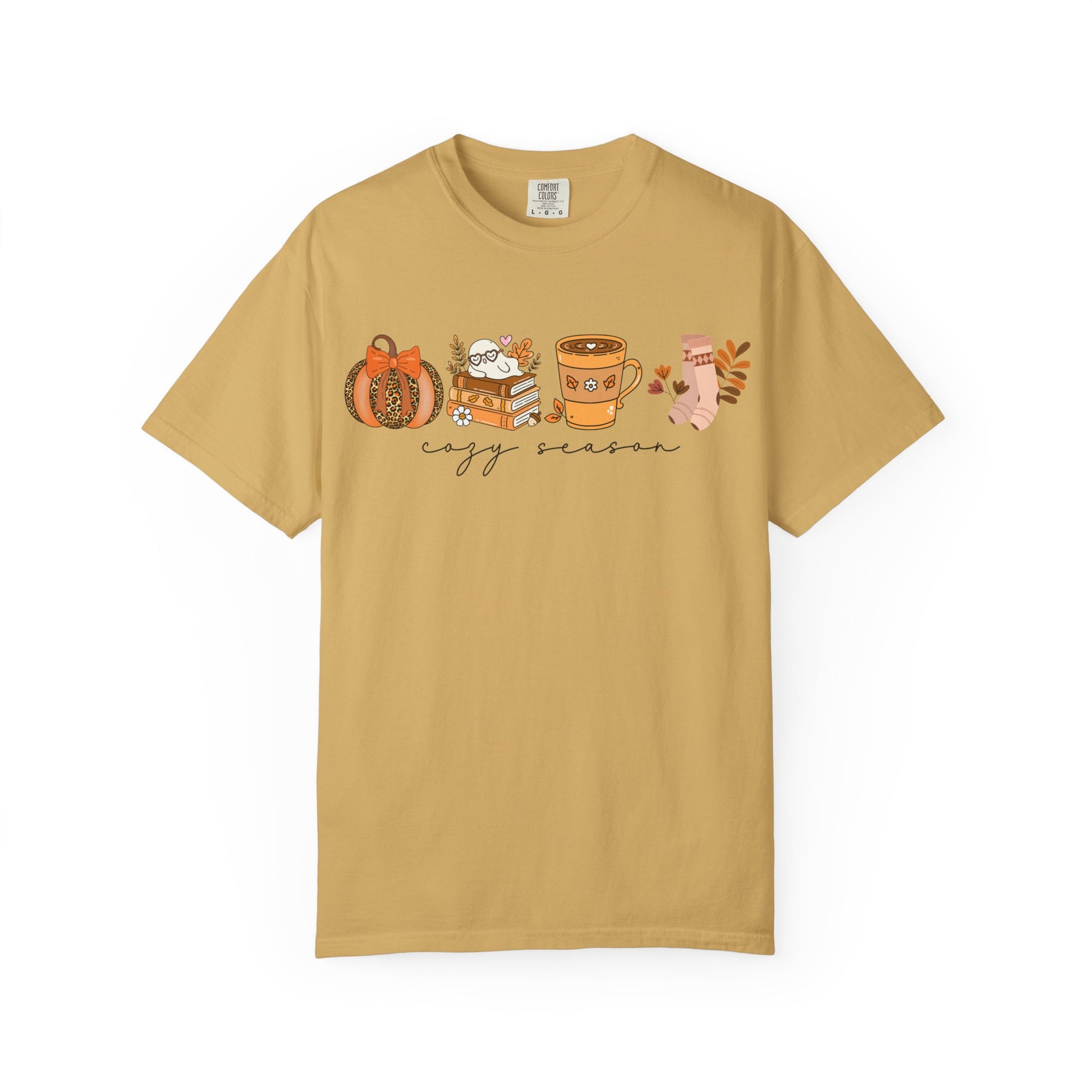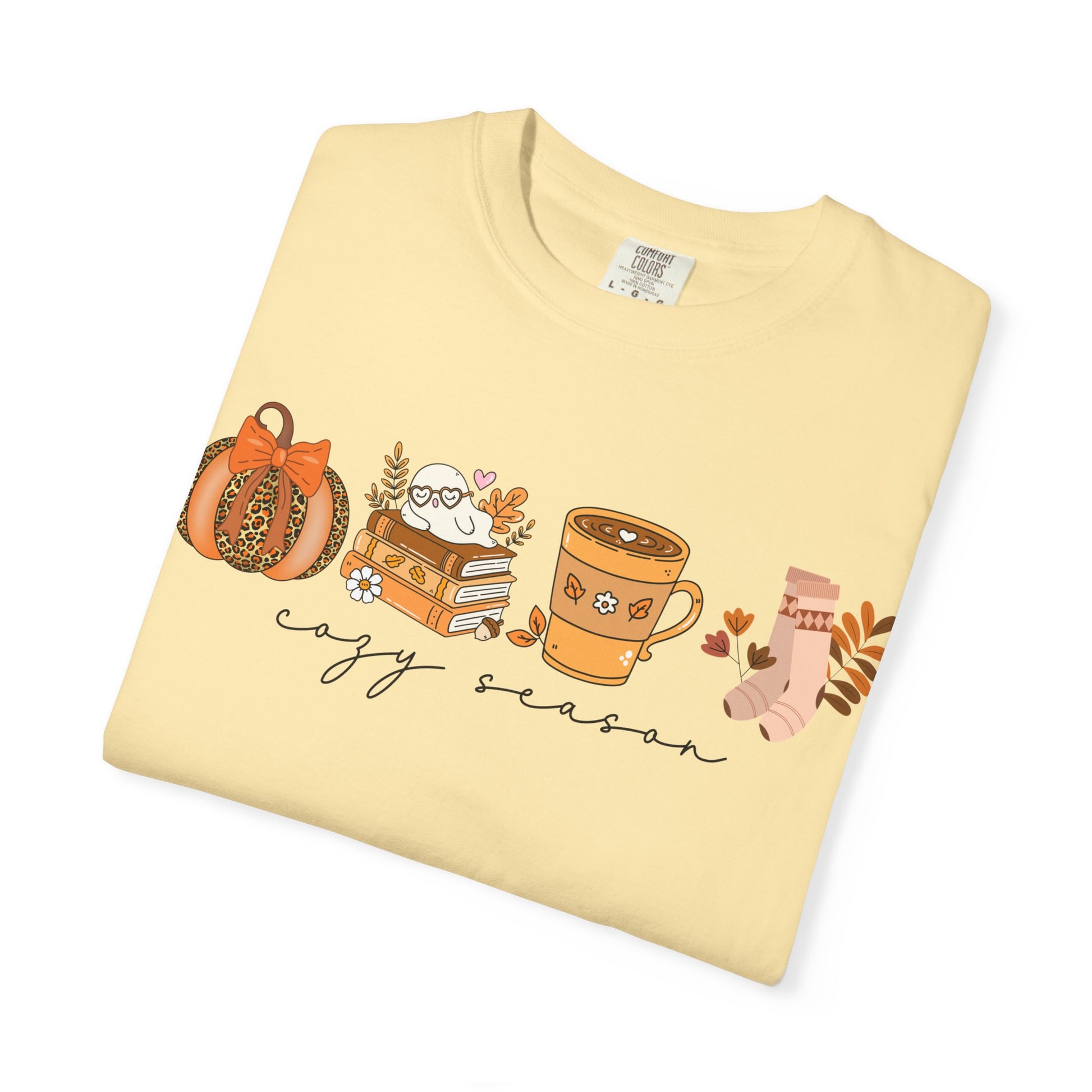 'Cozy Season' Bella + Canvas T-Shirt | Cozy Socks, Sleeping Ghost, Coquette Bow & Leopard Pumpkin Fall Graphic, Autumn Tee, Pumpkin Season Shirt, Cute Sweatshirt, Harvest Style Top, Perfect for Thanksgiving