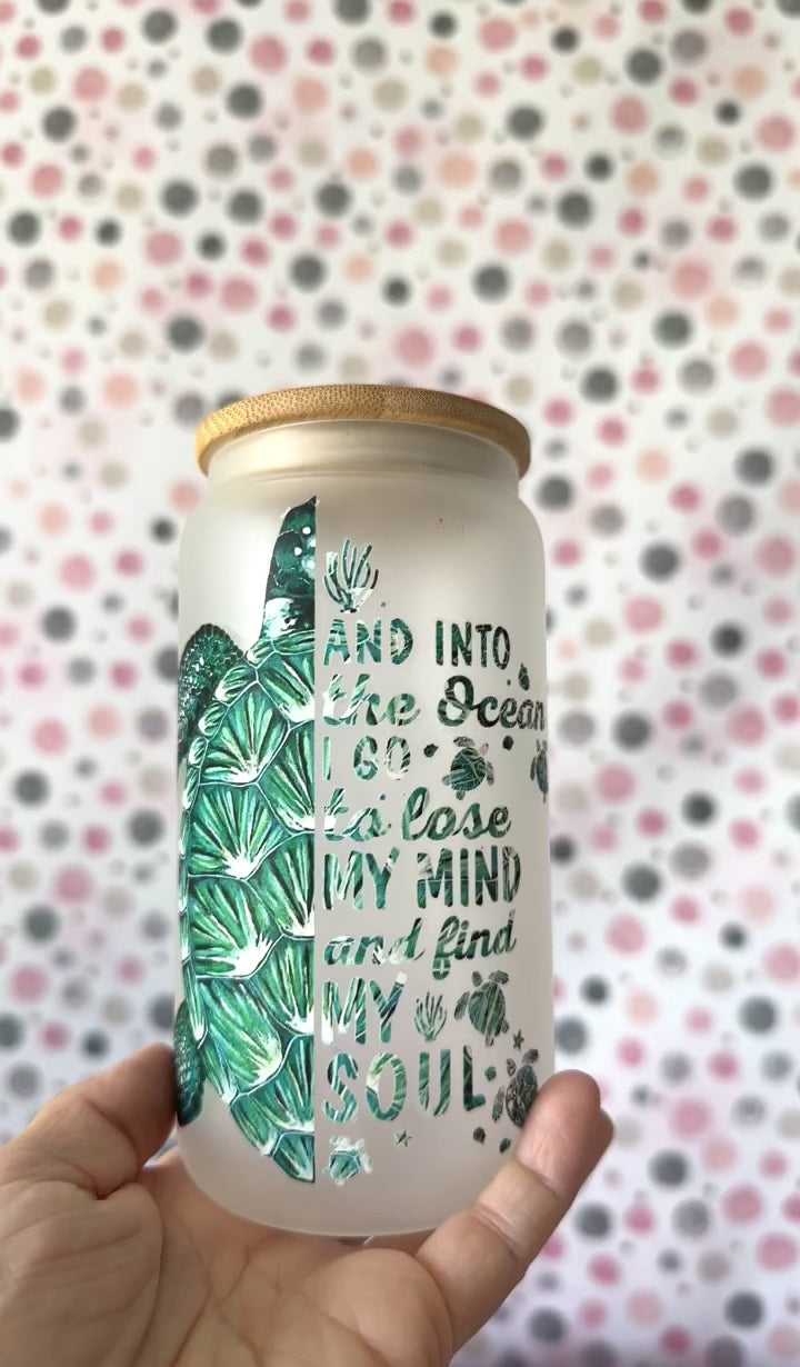 Embrace your journey with this beautifully designed ‘Finding My Soul’ frosted glass can tumbler. With its ethereal, frosted finish and inspiring message, this tumbler is a reminder to take time for self discovery and reflection. Perfect for your favorite cold beverages, the sleek, modern design pairs functionality with a deeper, spiritual touch, ideal for those on a path of mindfulness and self growth, it’s a thoughtful companion for your everyday moments of calm and clarity. A perfect gift for anyone seeking balance and inner peace.