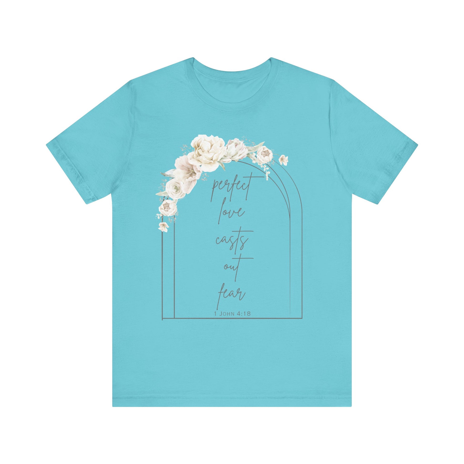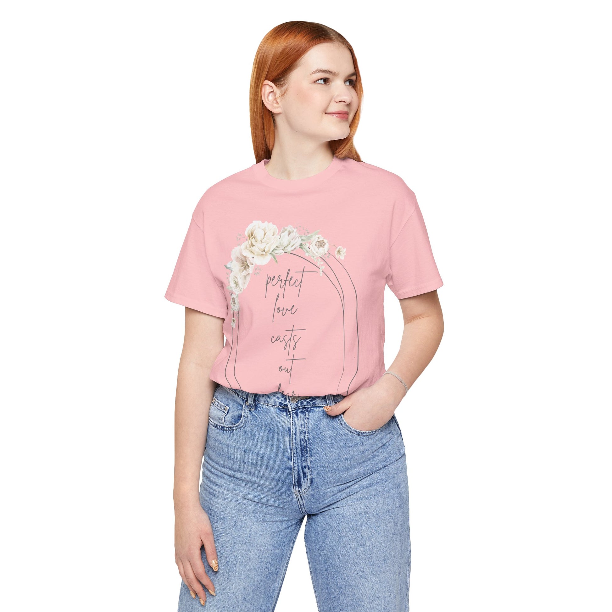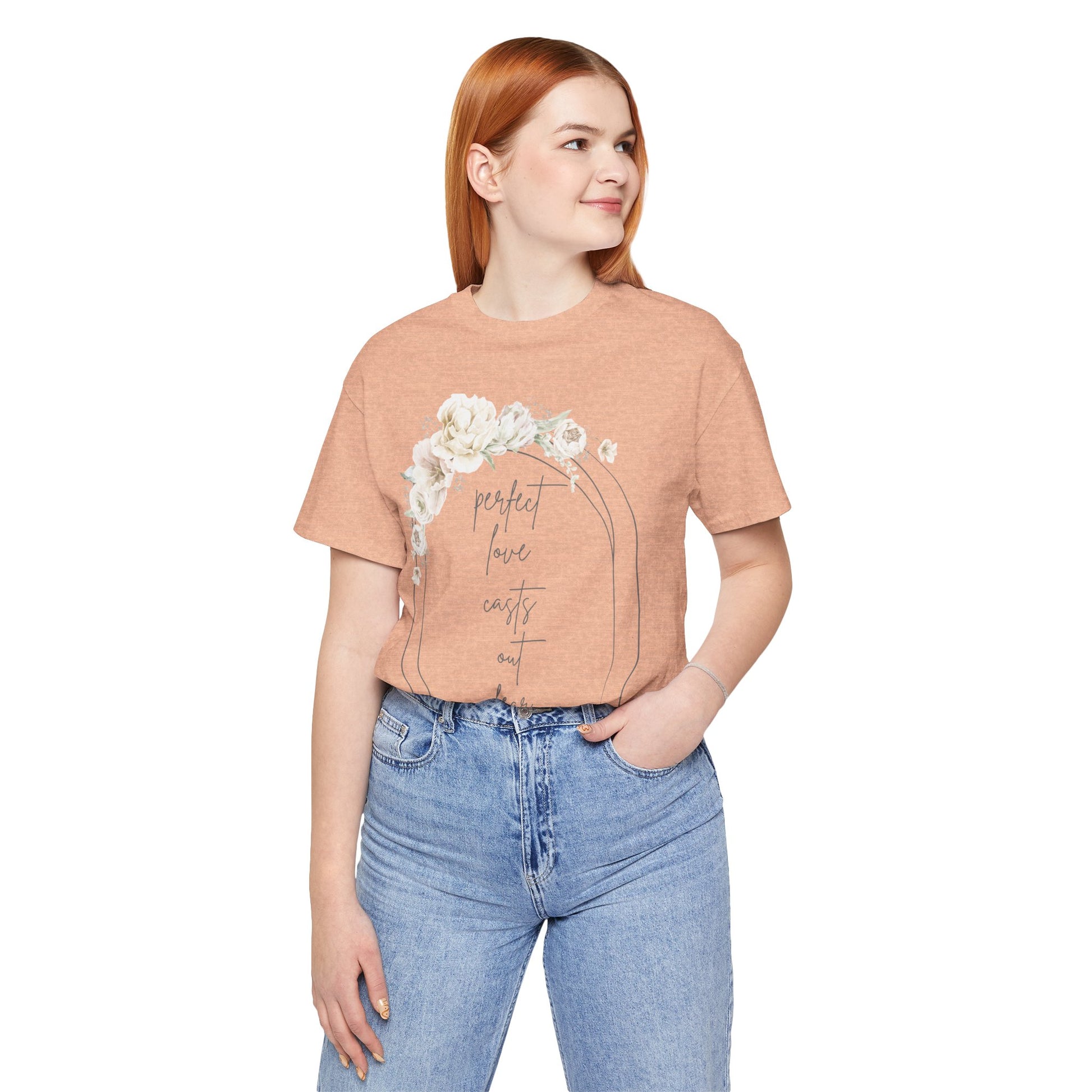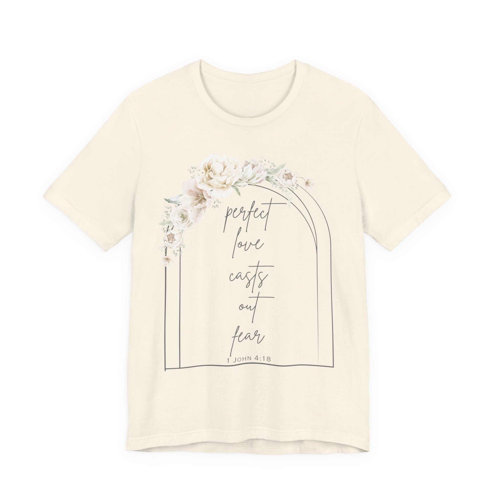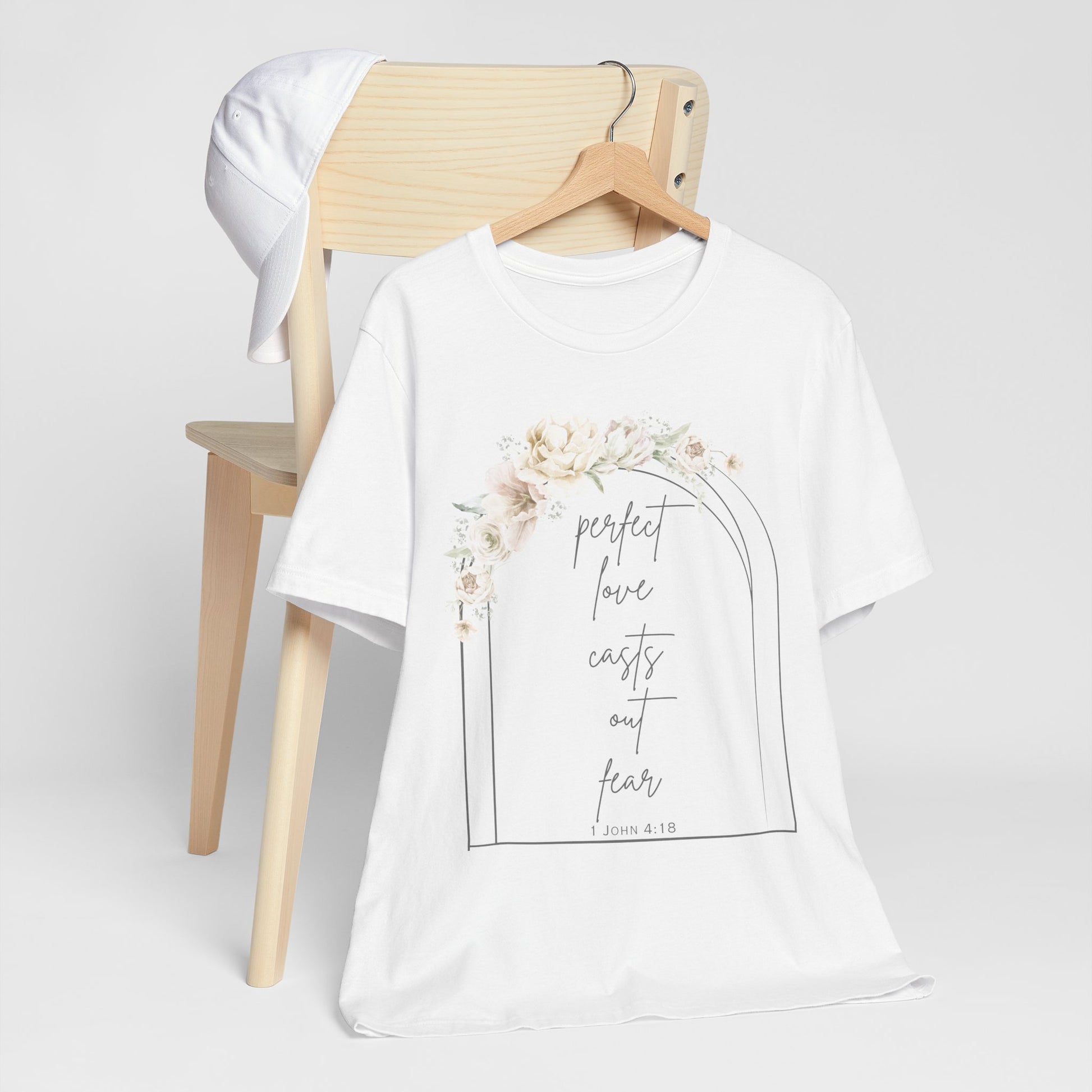 Floral Inspirational T-Shirt, Perfect Love Casts Out Fear Tee, Faith-Based Apparel, Spring Fashion, Religious Top