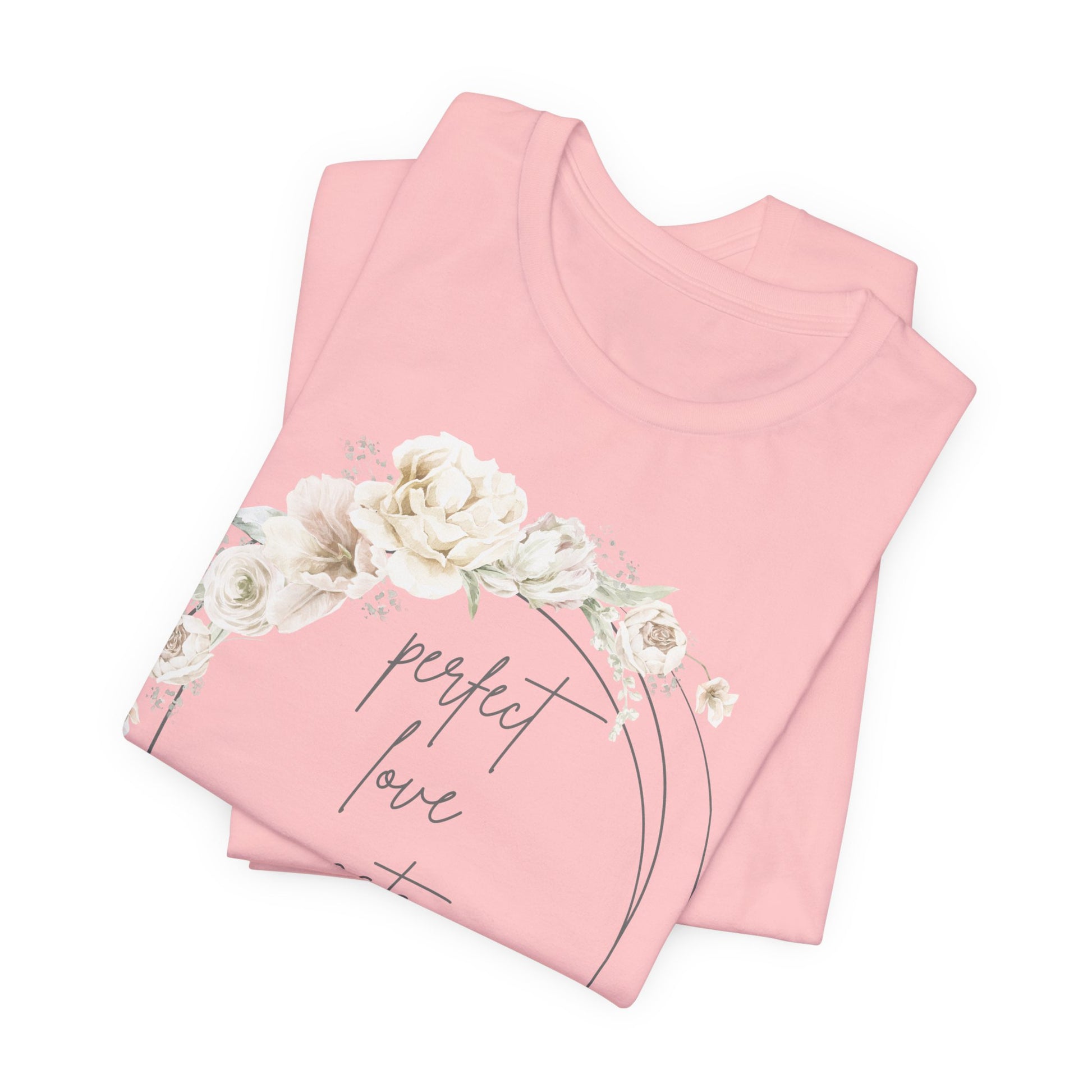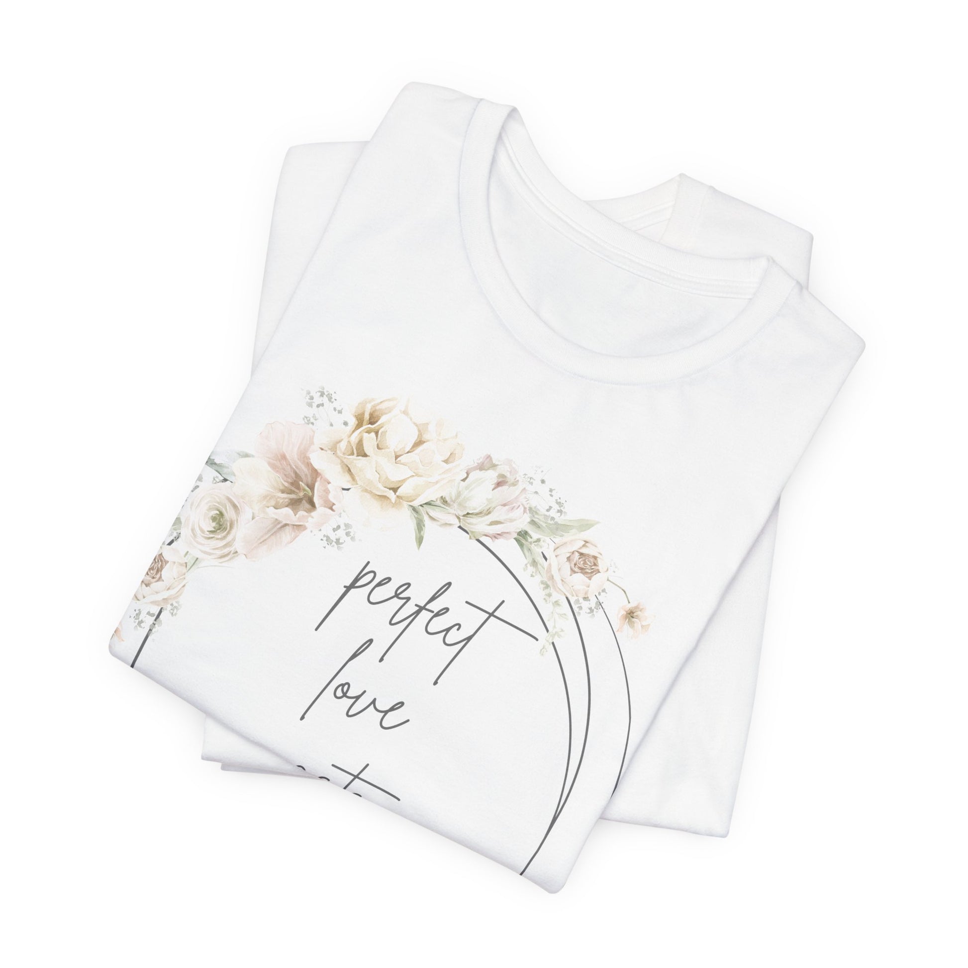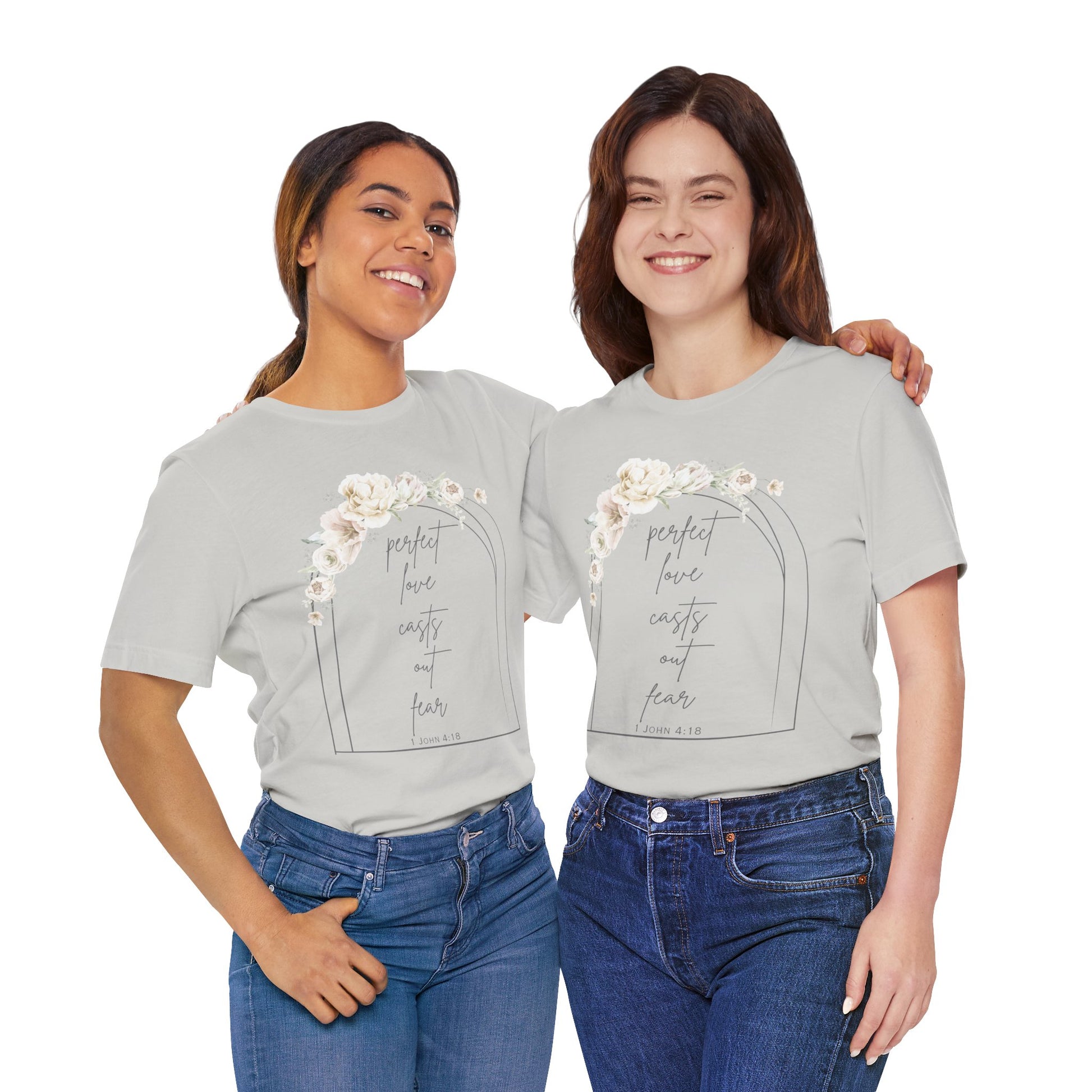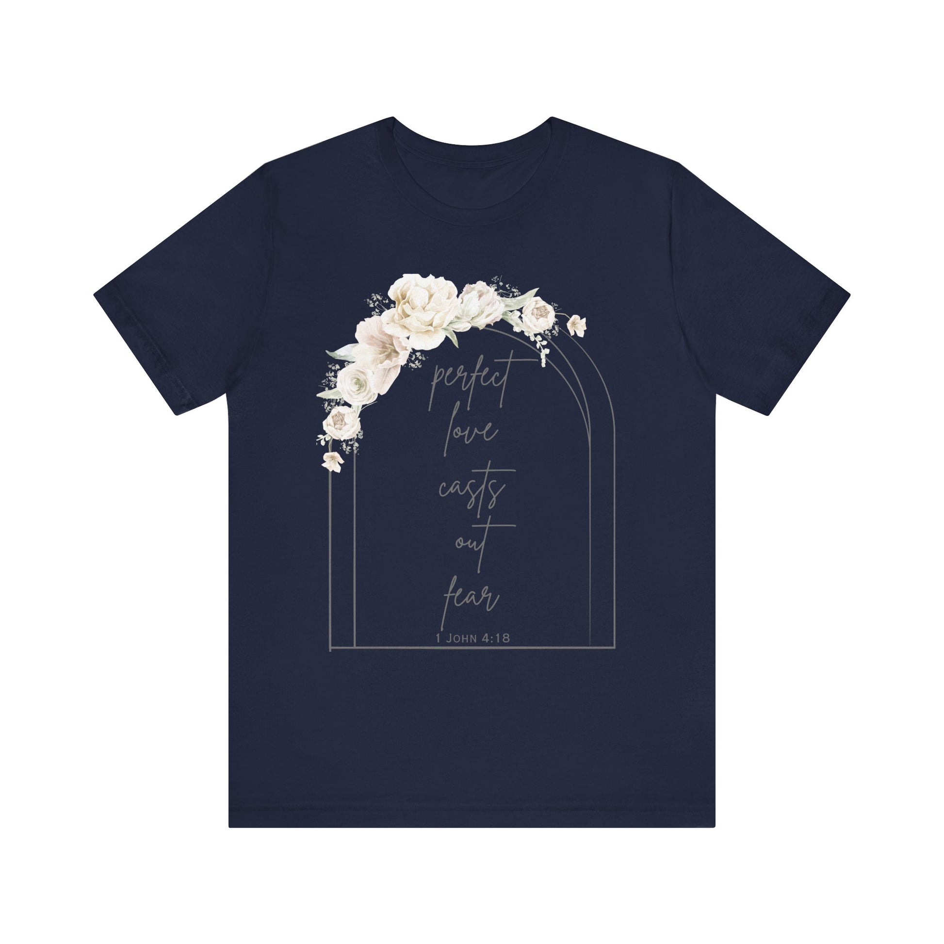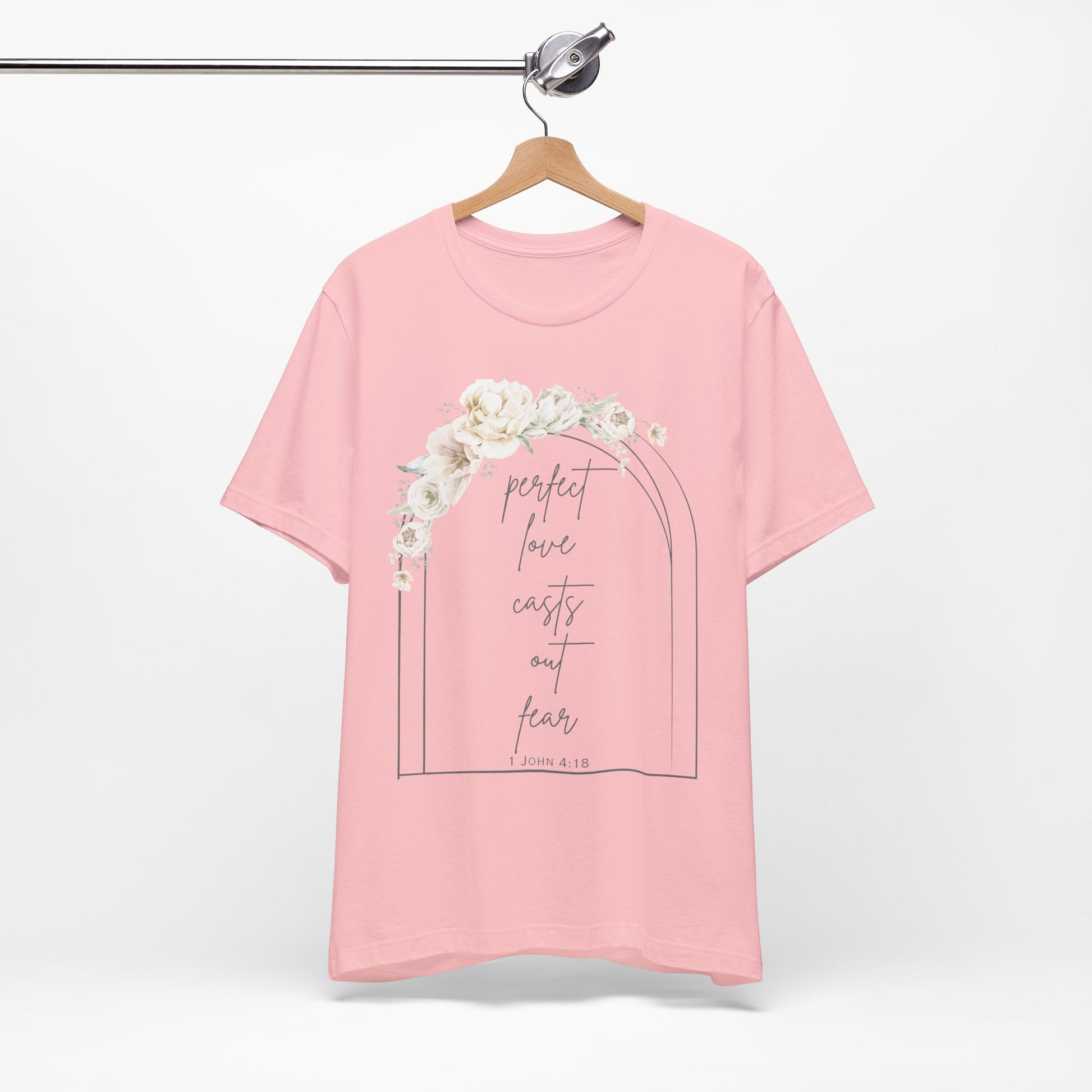 Floral Inspirational T-Shirt, Perfect Love Casts Out Fear Tee, Faith-Based Apparel, Spring Fashion, Religious Top