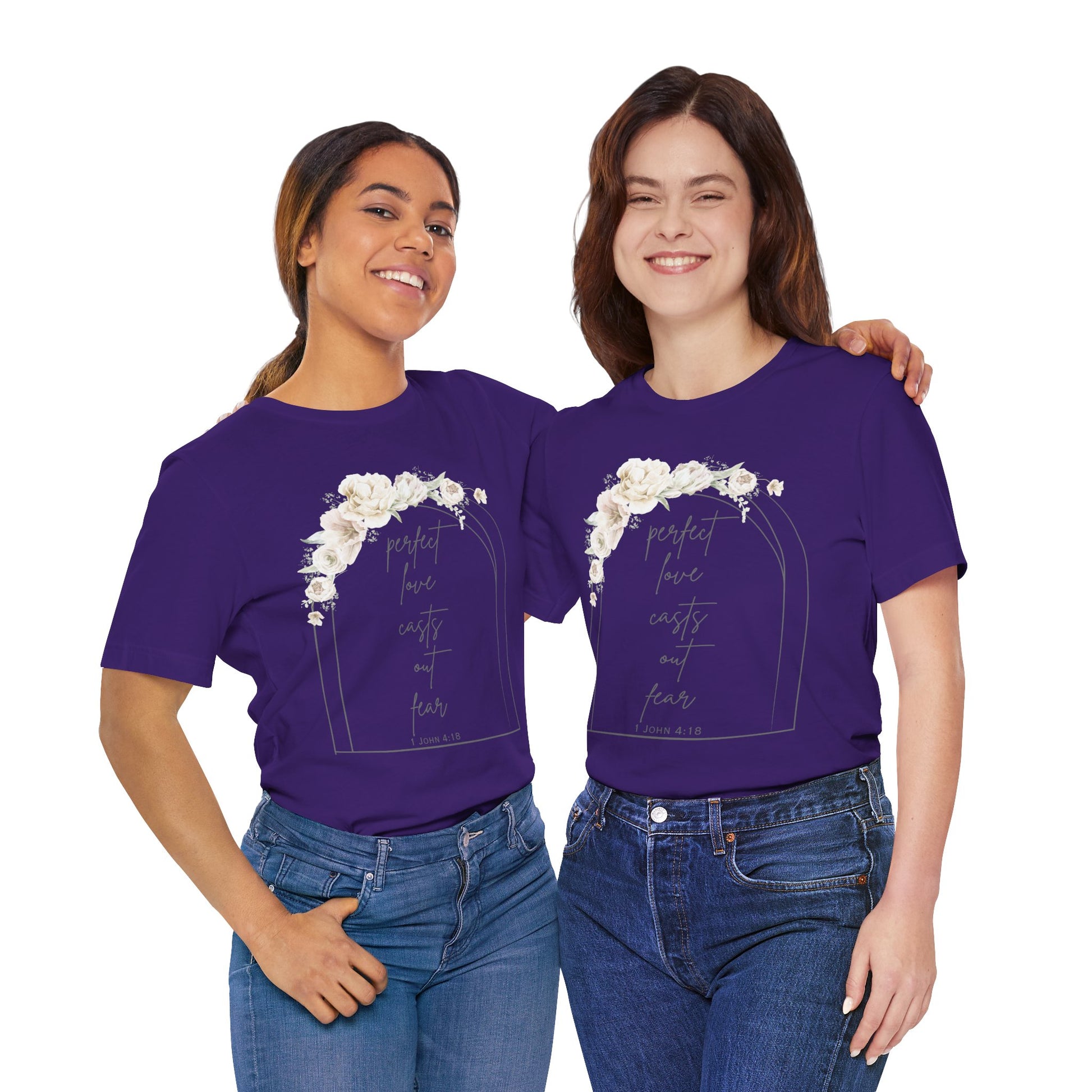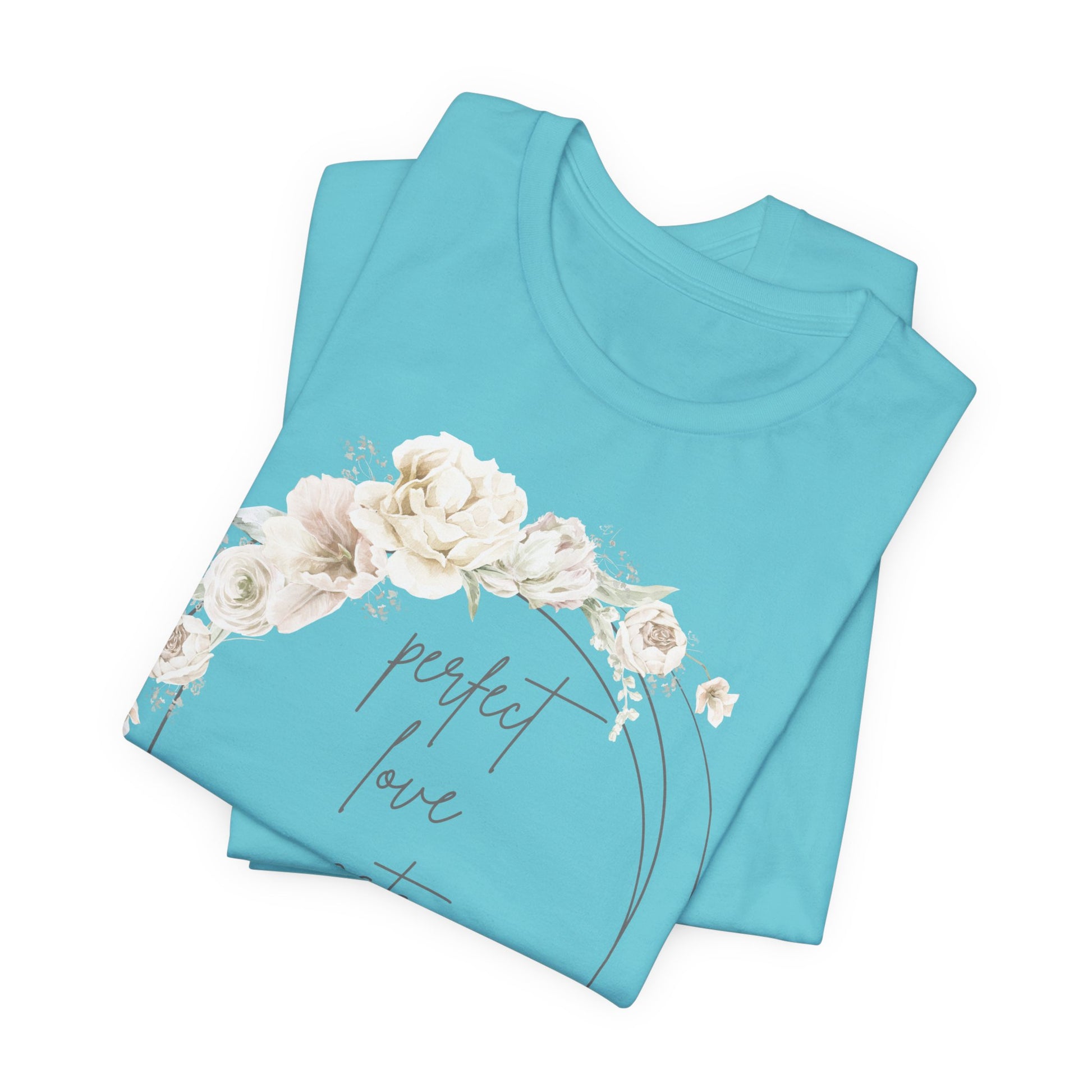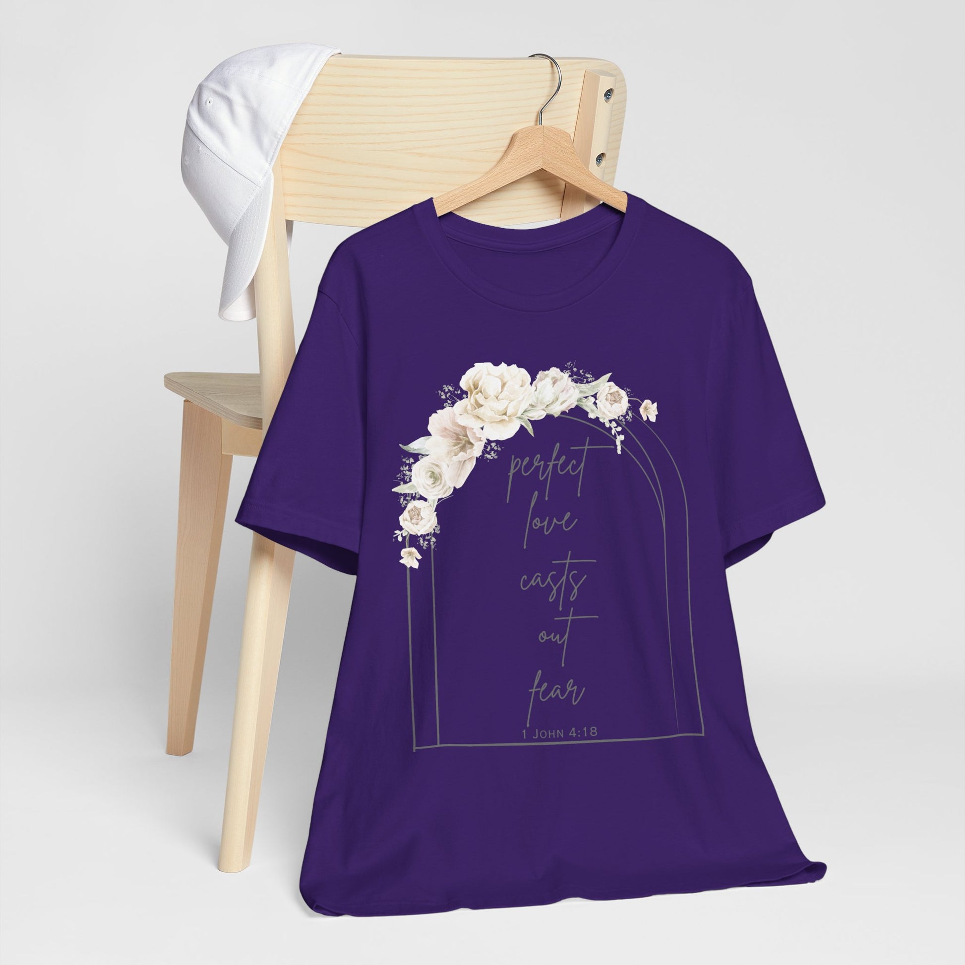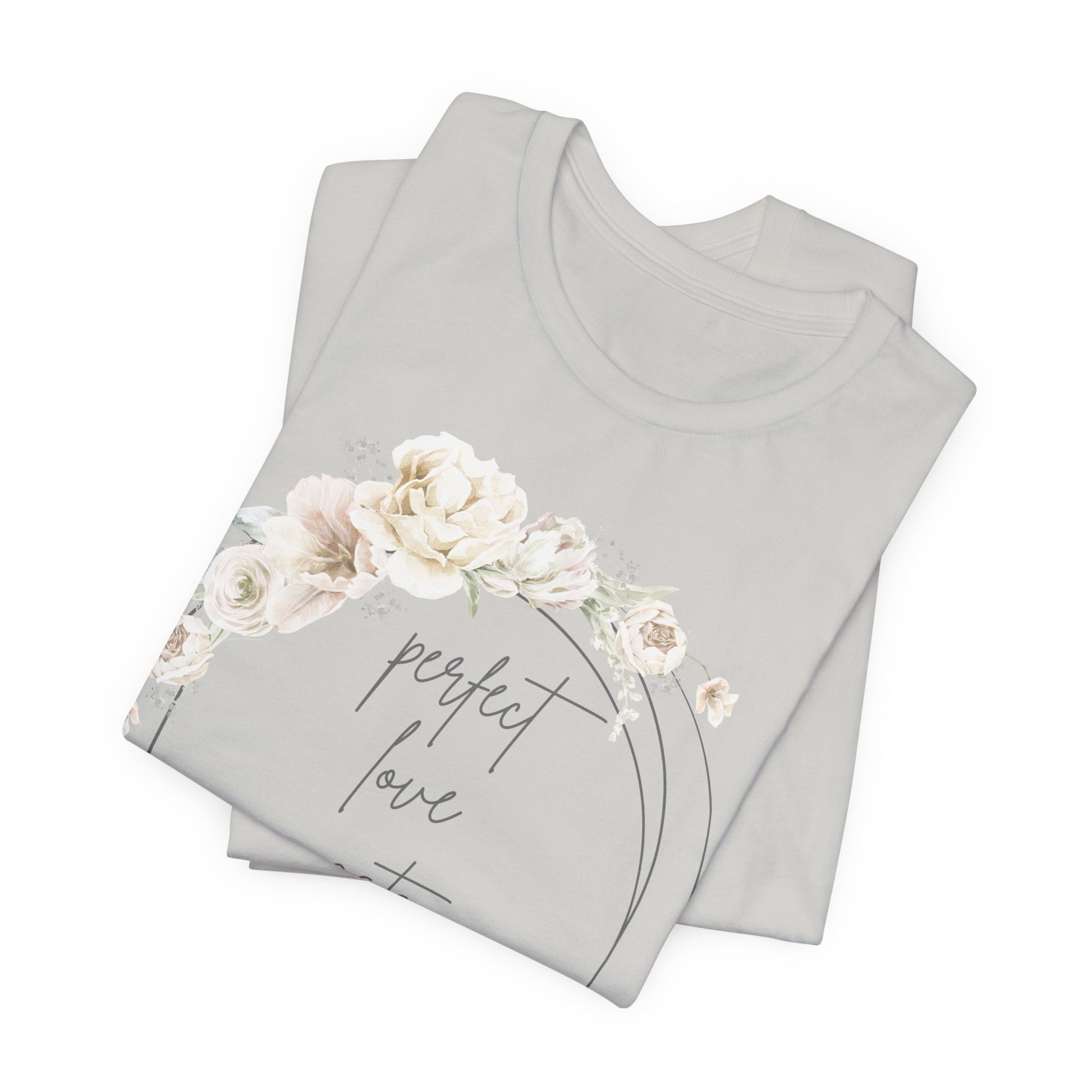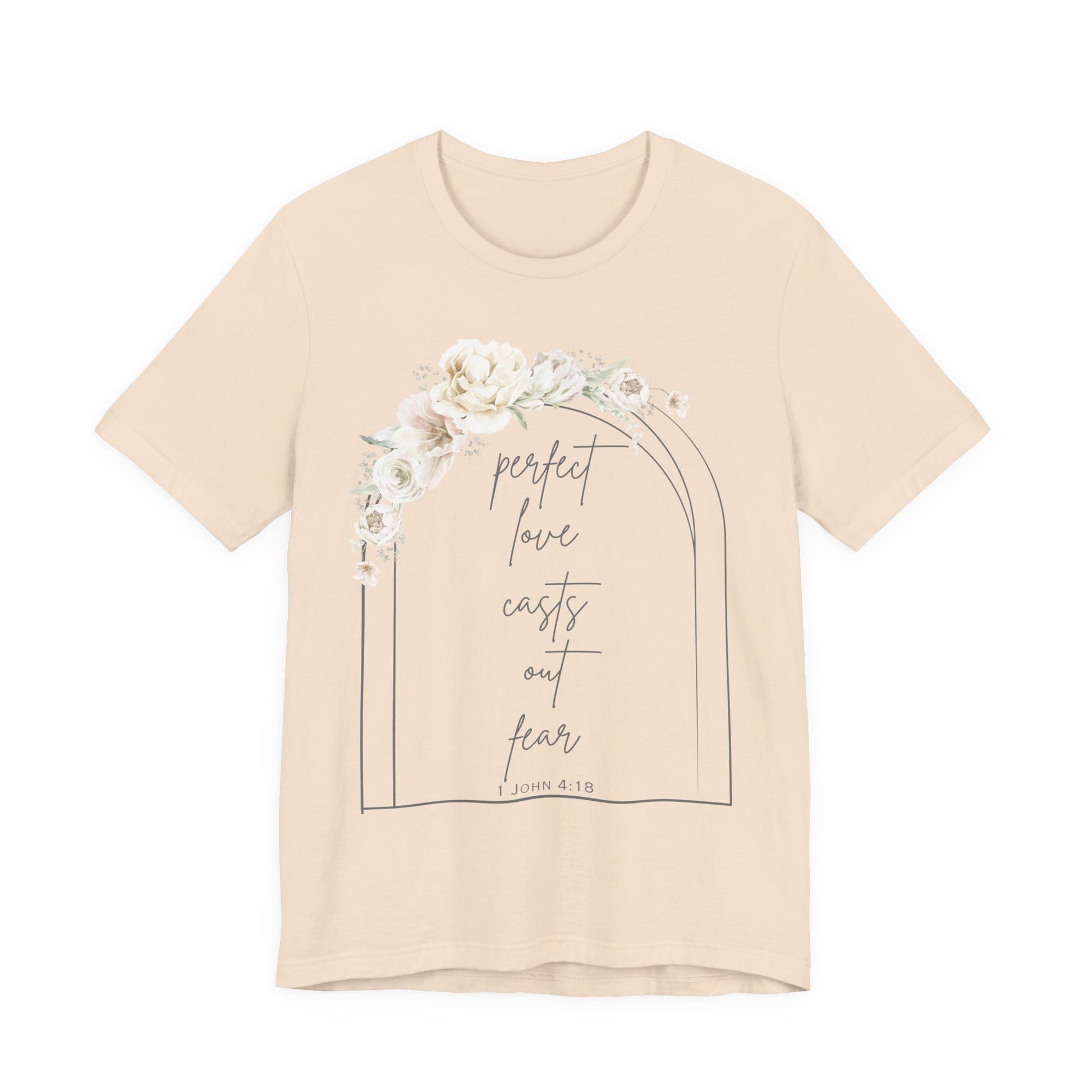 Floral Inspirational T-Shirt, Perfect Love Casts Out Fear Tee, Faith-Based Apparel, Spring Fashion, Religious Top