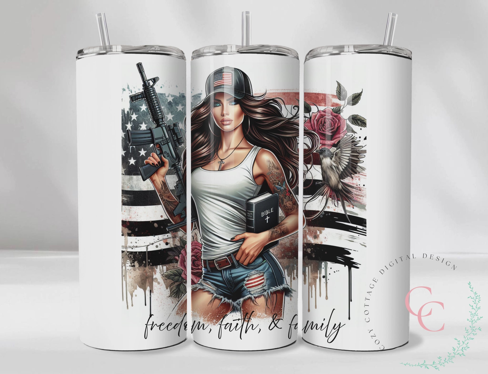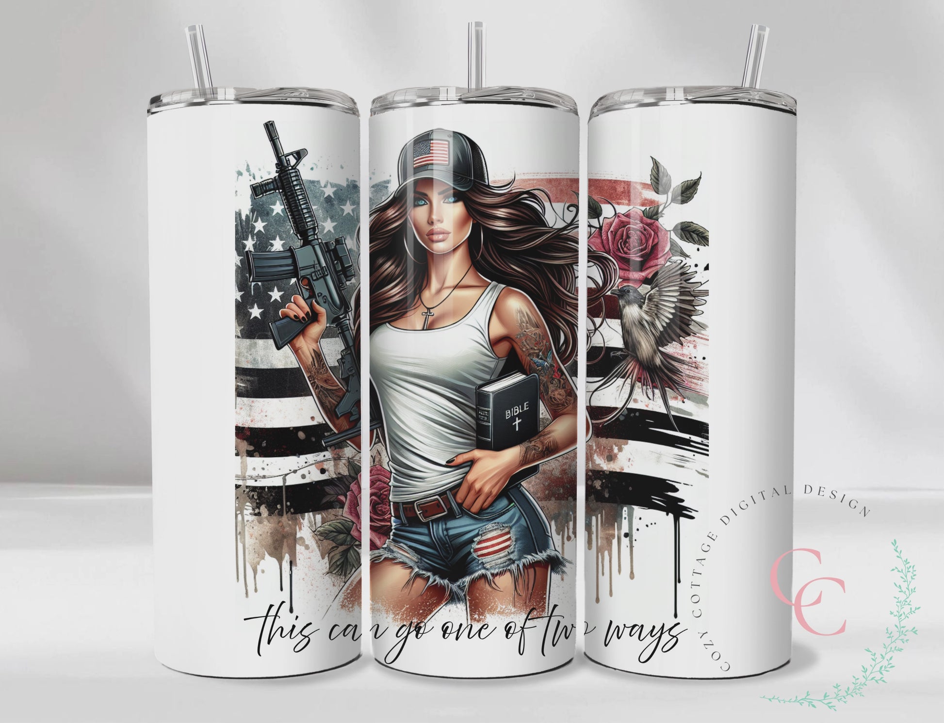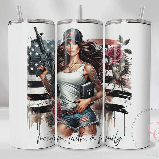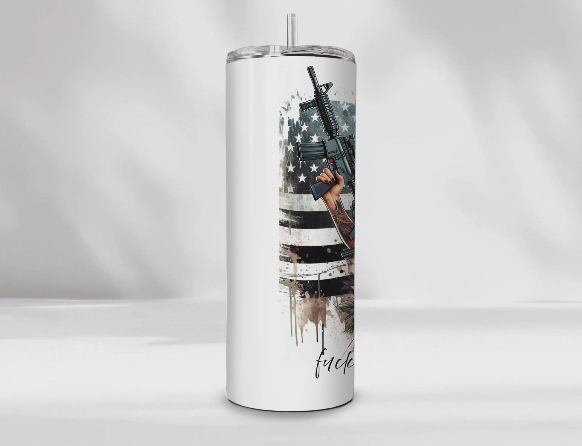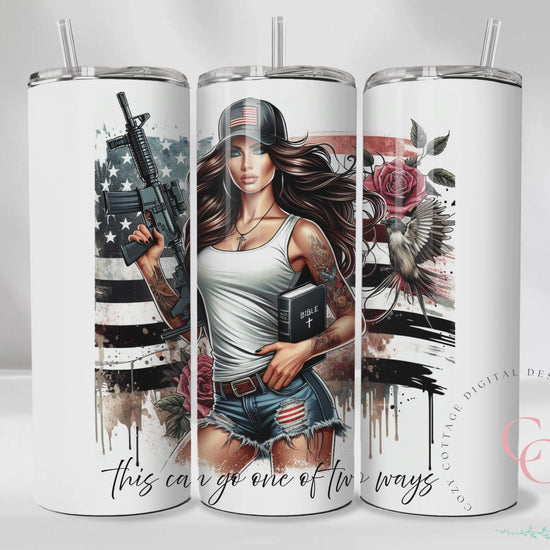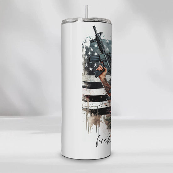 Fuck Around and Find Out Sassy Chic Bible & Gun SEAMLESS 20 Oz Skinny Tumbler