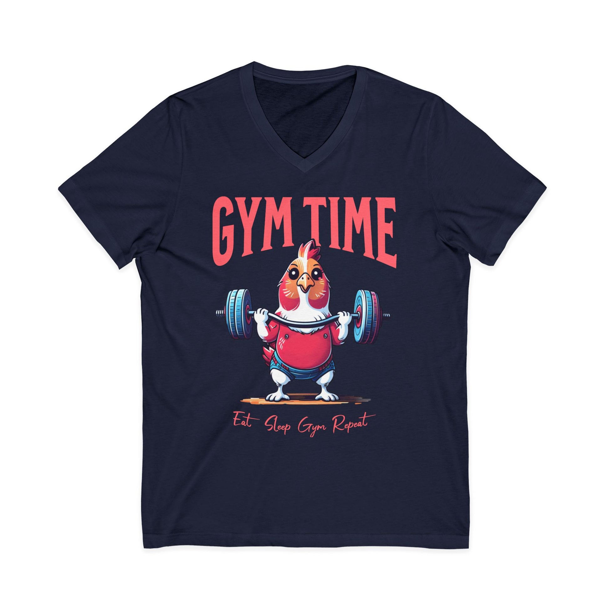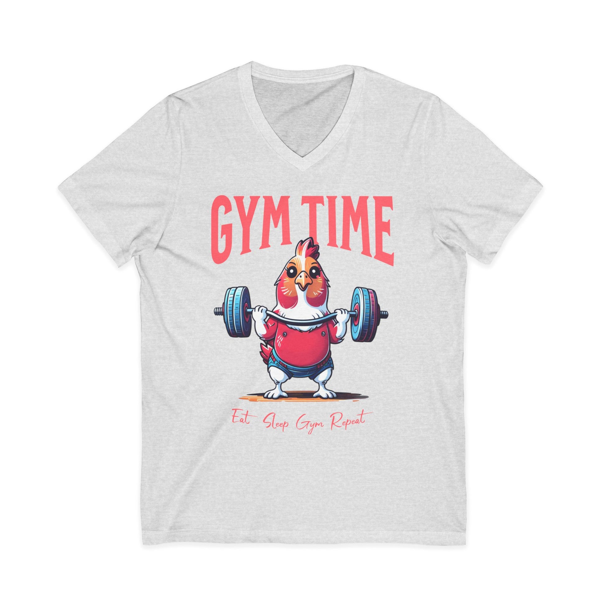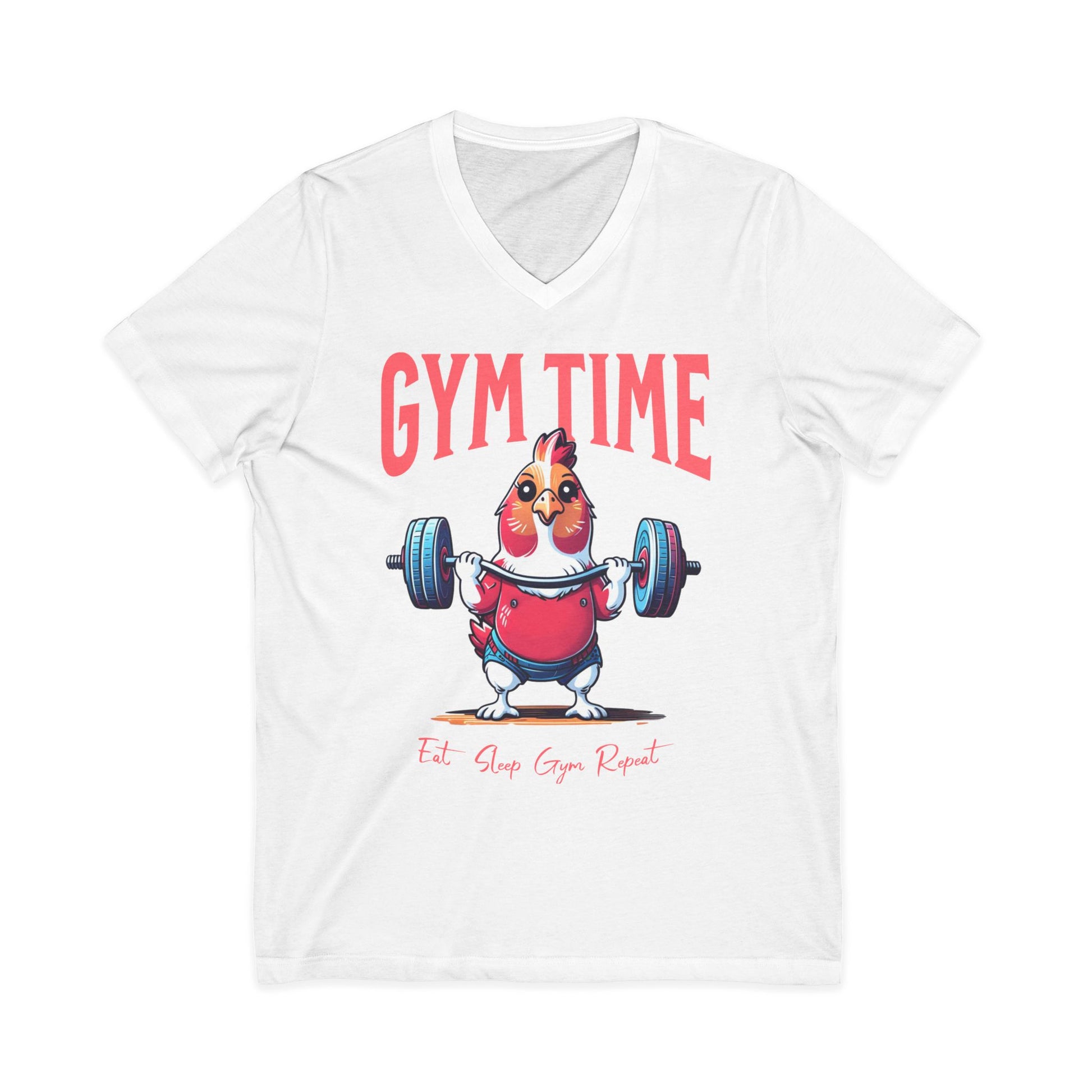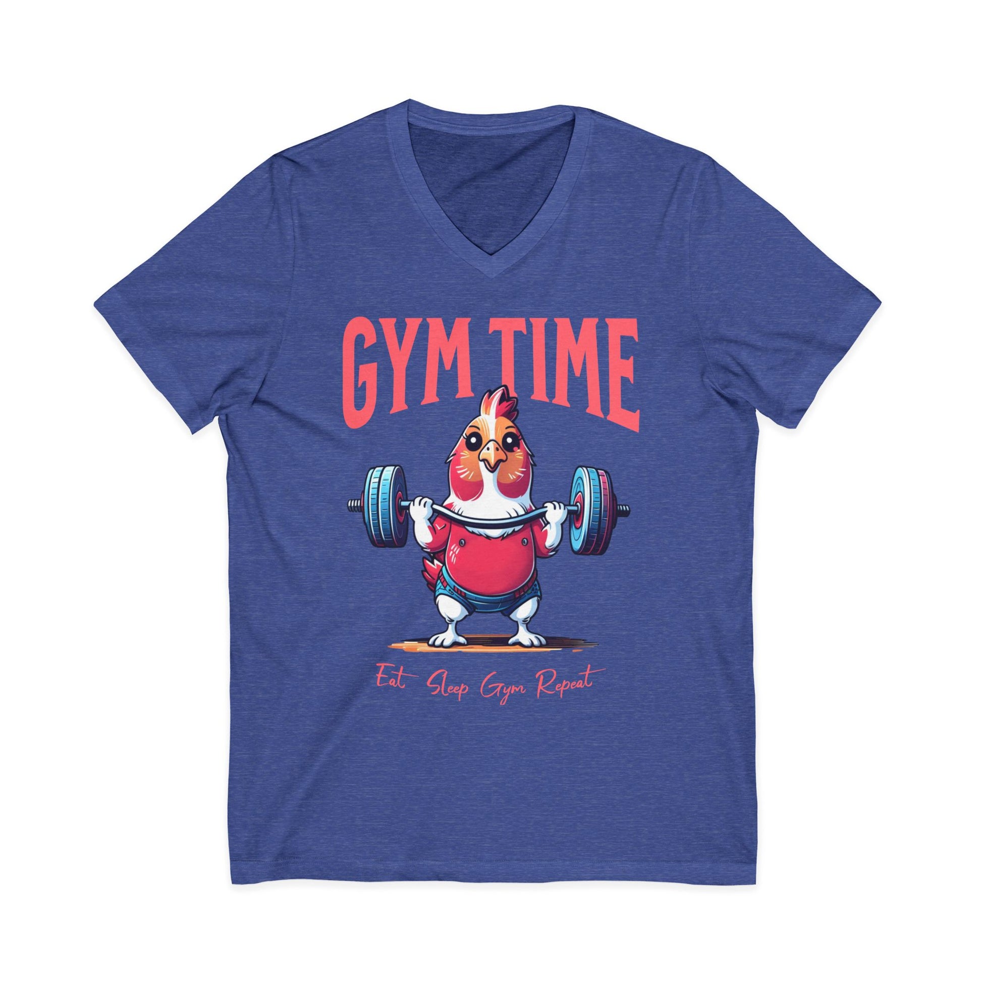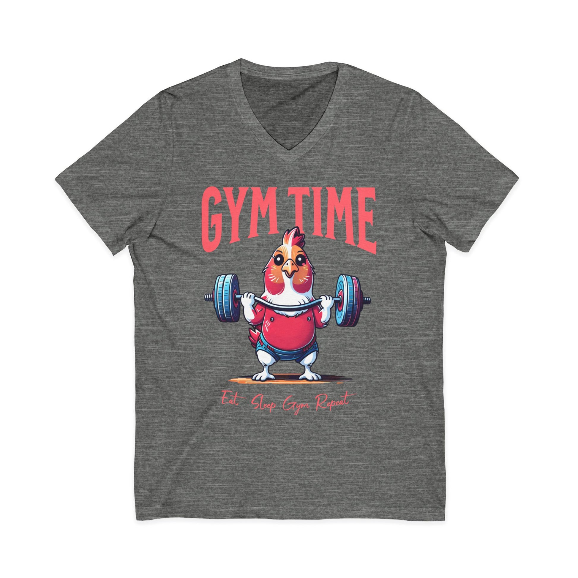 Funny Hen Gym Time V-Neck Tee, Farm Fitness Humor Graphic Shirt, Gift for Gym Lovers, Workout Humor Shirt, Chicken/Hen Lovers