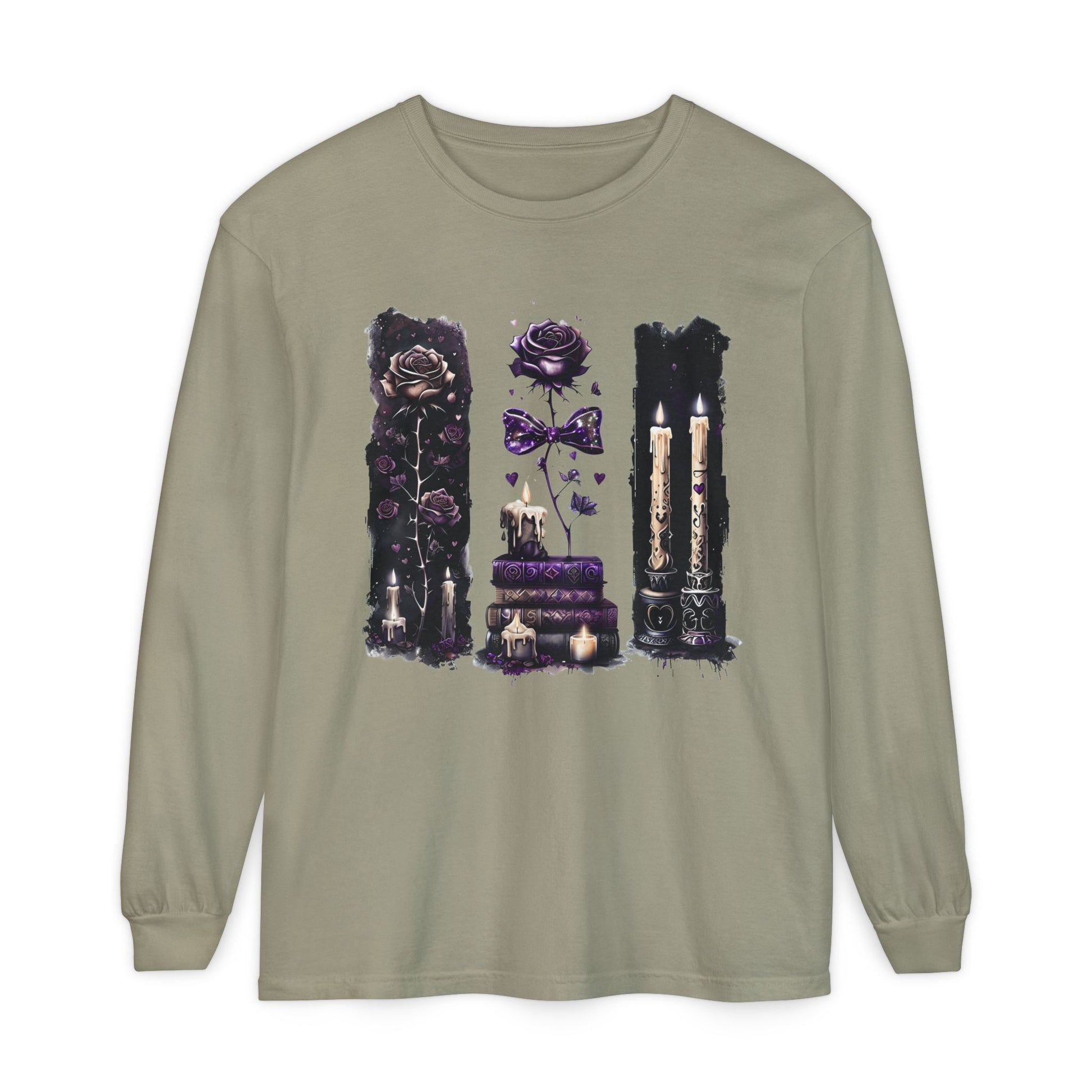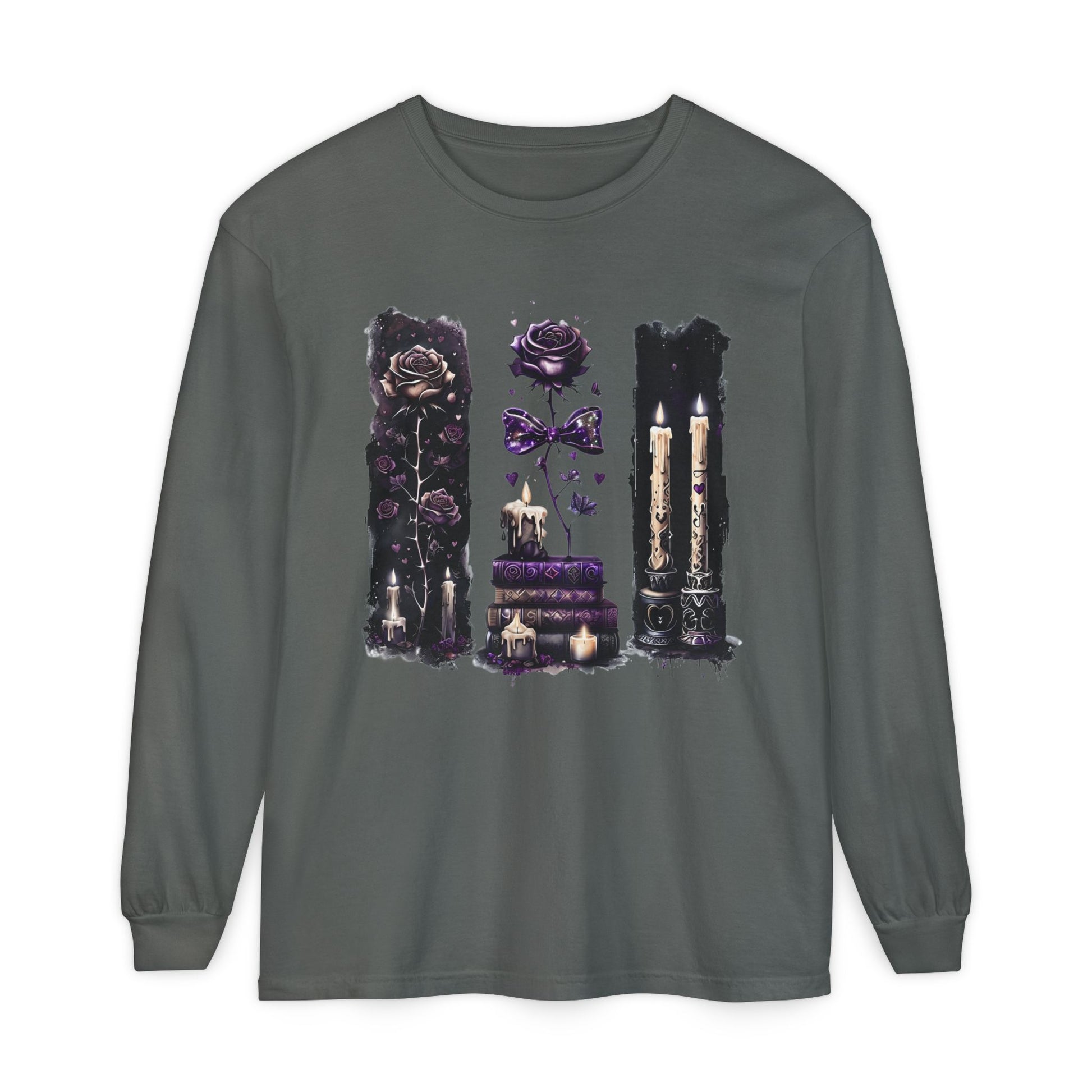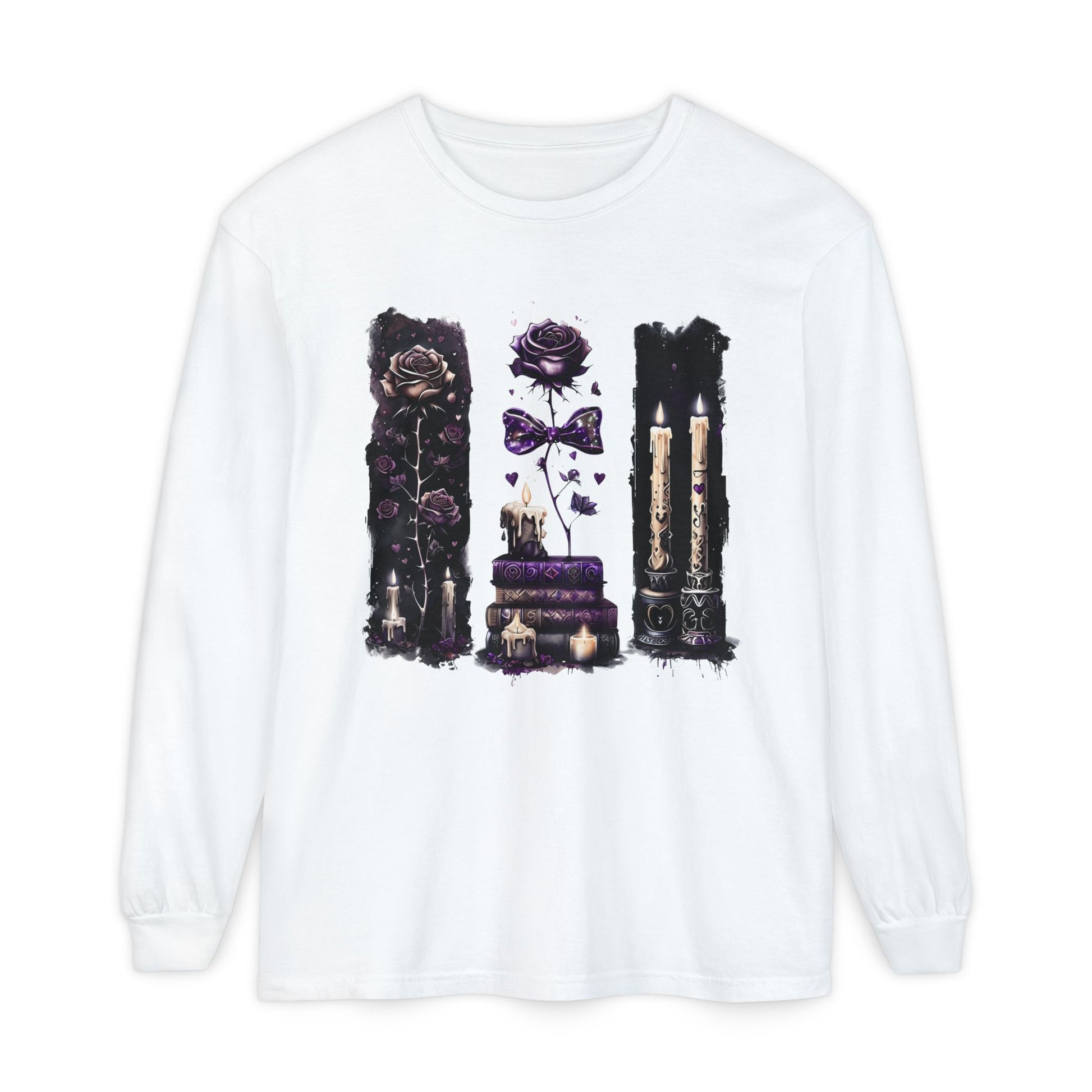 Gothic Witchcraft Long Sleeve Tee – Dark Roses, Candles & Book Lover