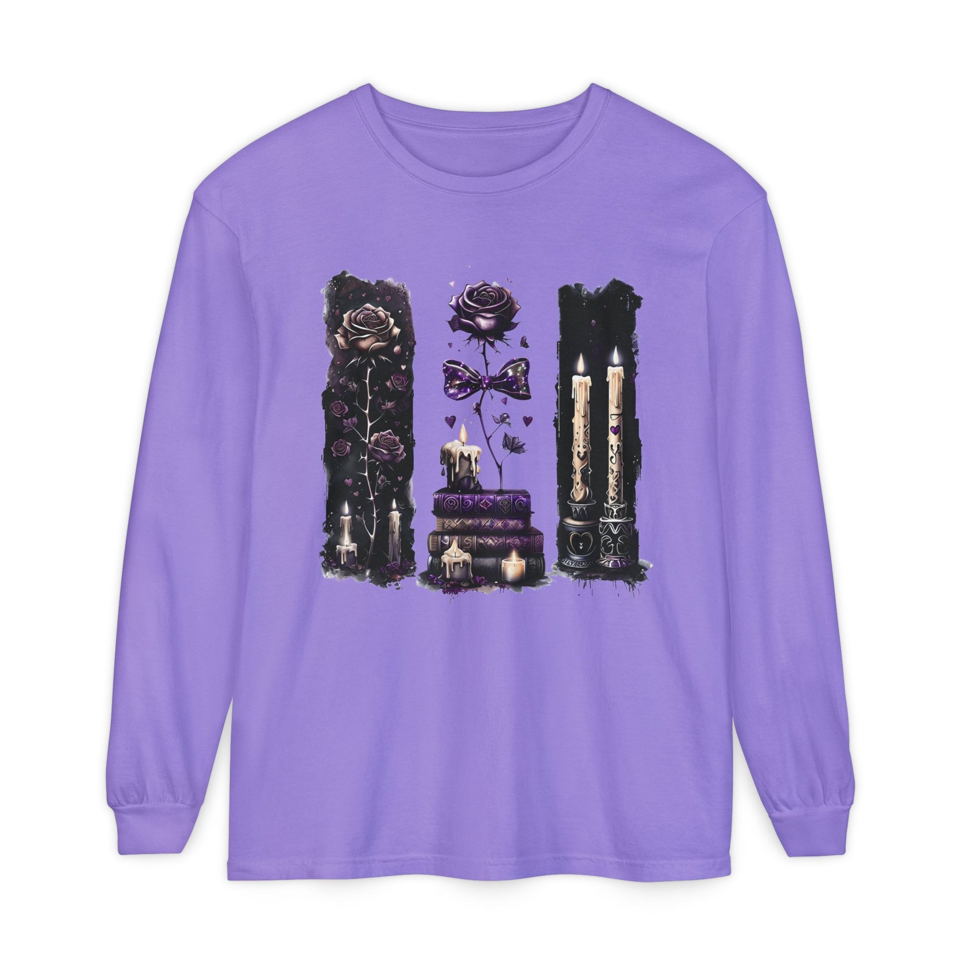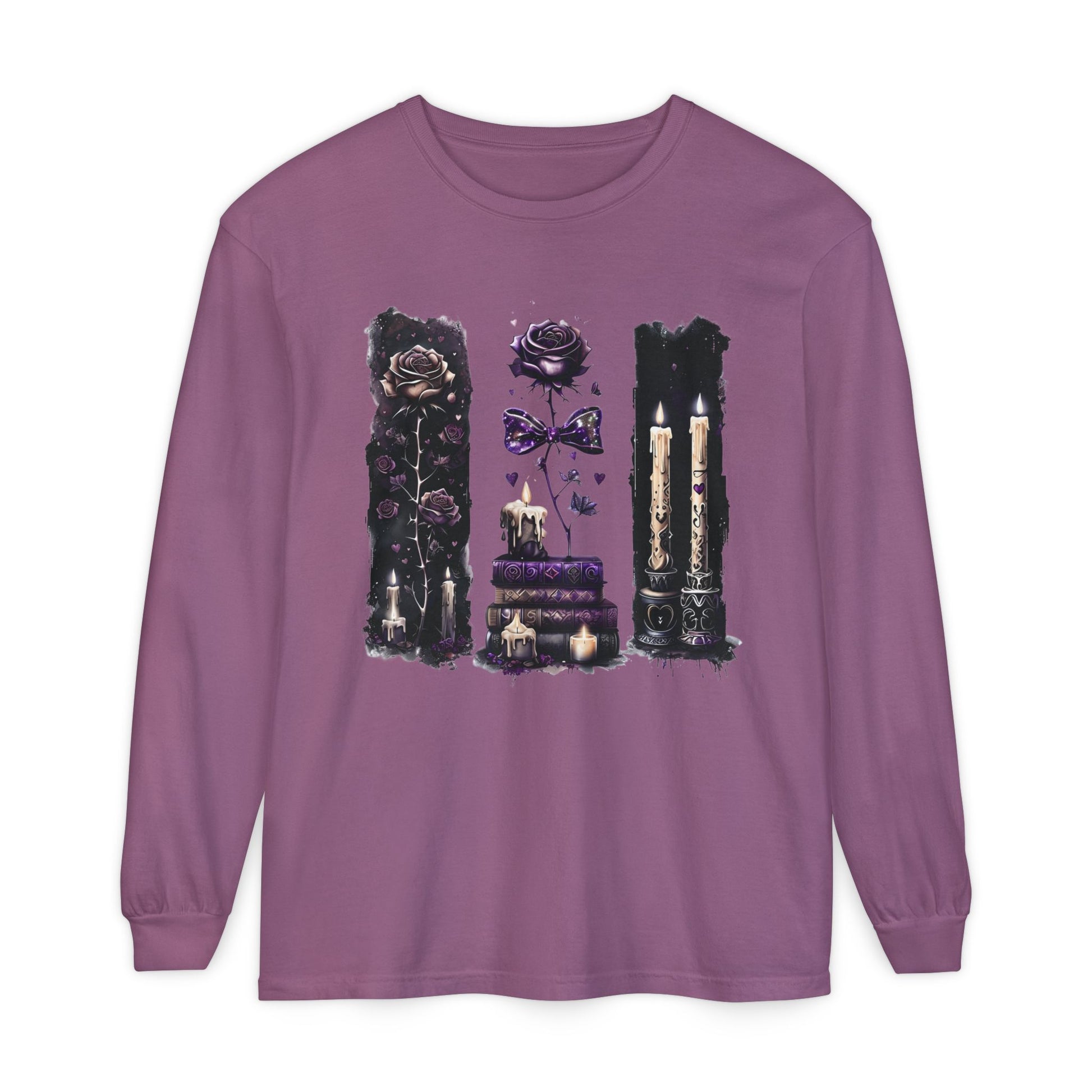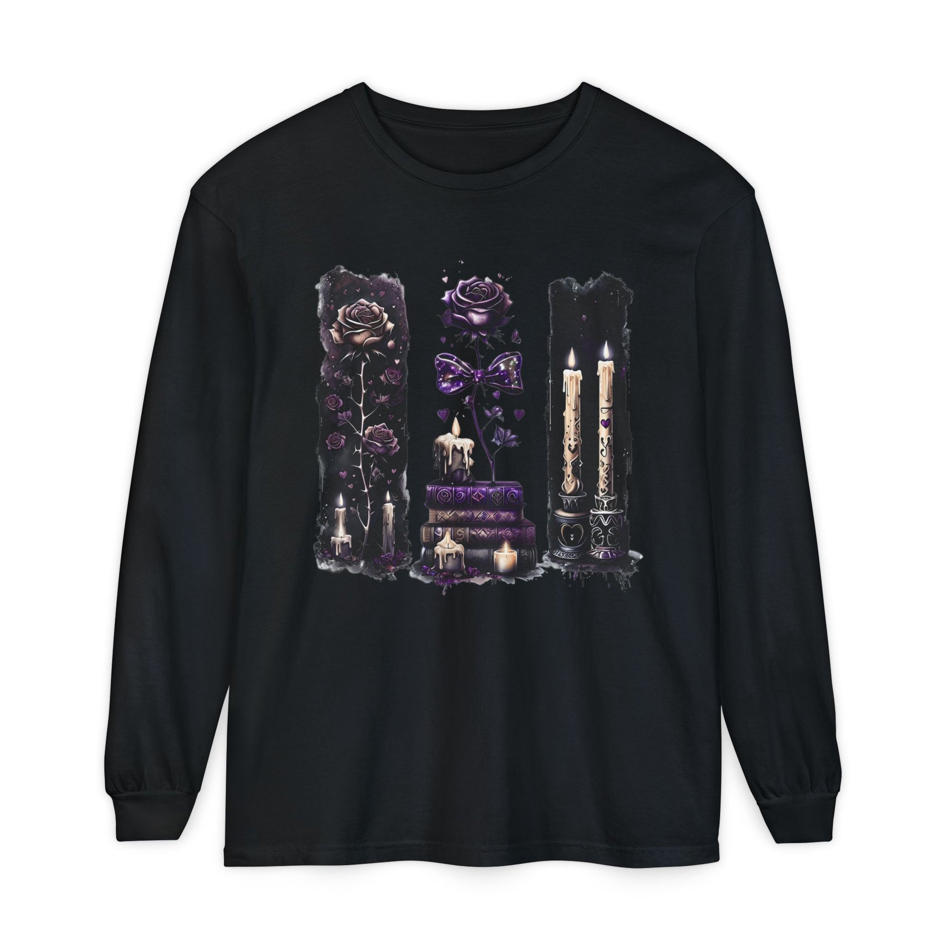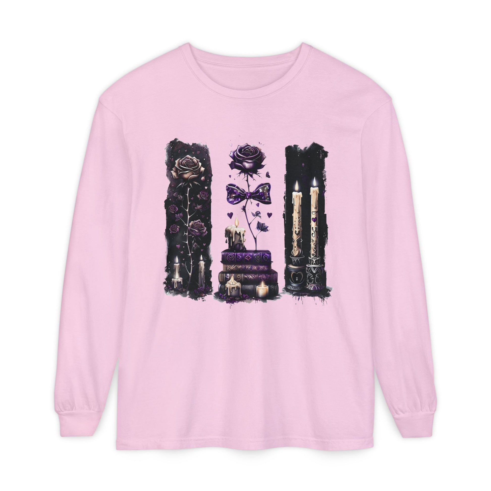 Gothic Witchcraft Long Sleeve Tee – Dark Roses, Candles & Book Lover