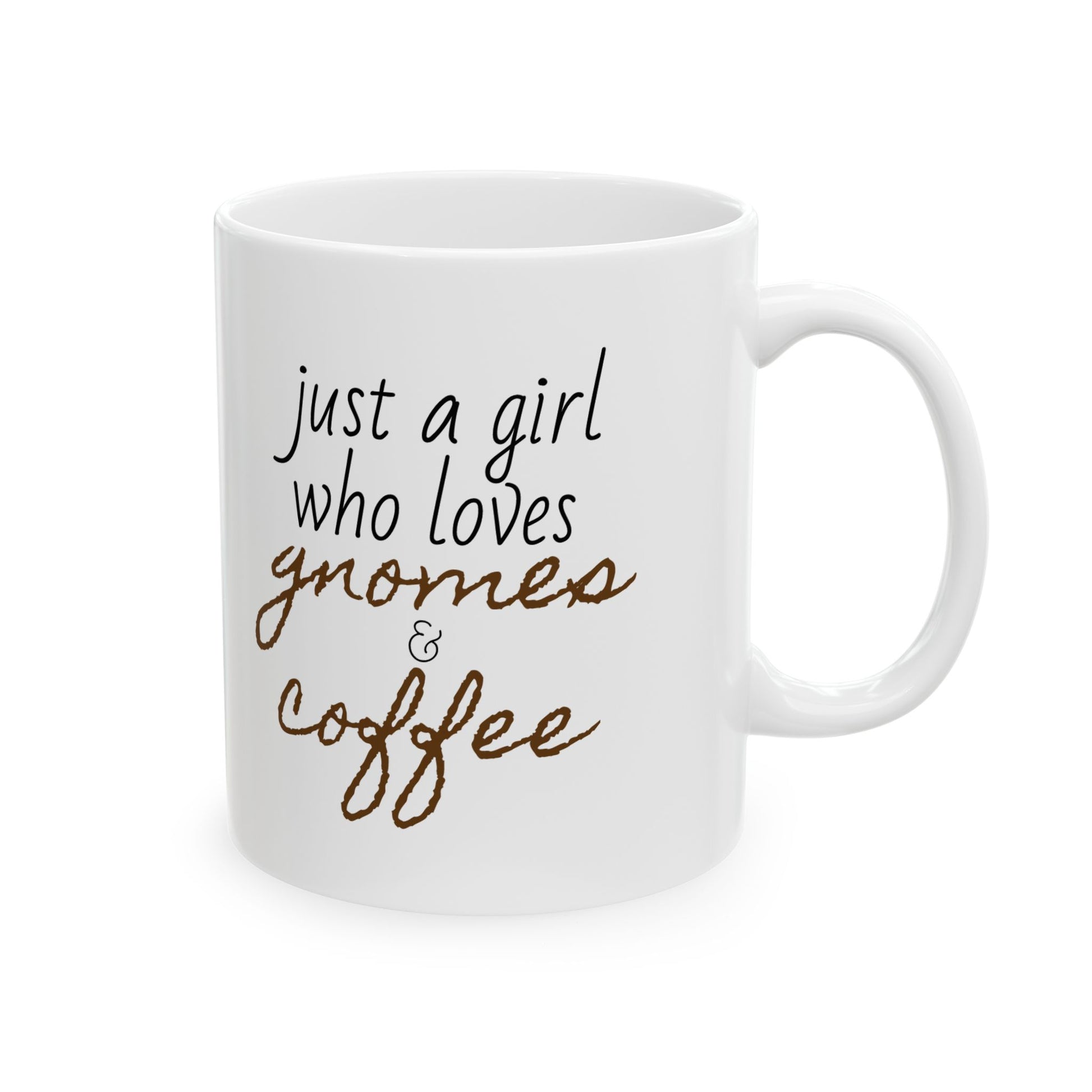 Just a Girl Who Loves Gnomes & Coffee Mug, Fall/Autumn Cozy Drinkware (11oz, 15oz)