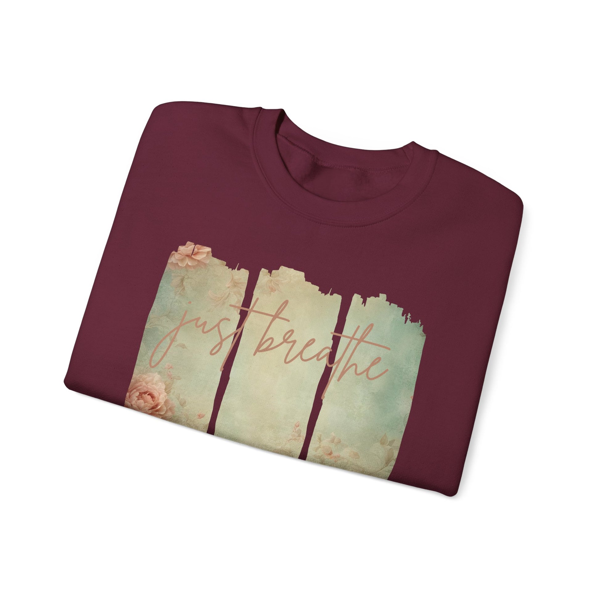 'Just Breathe' With Soft Floral Vertical Trio Background Sweatshirt