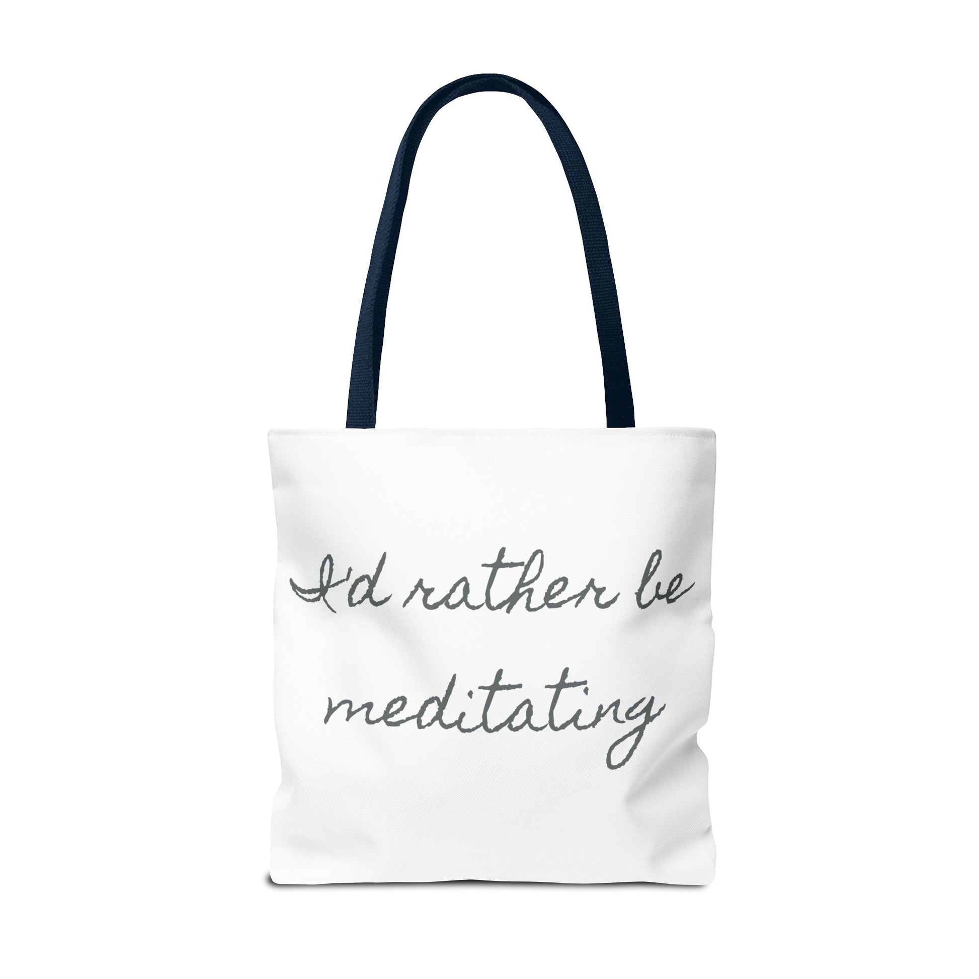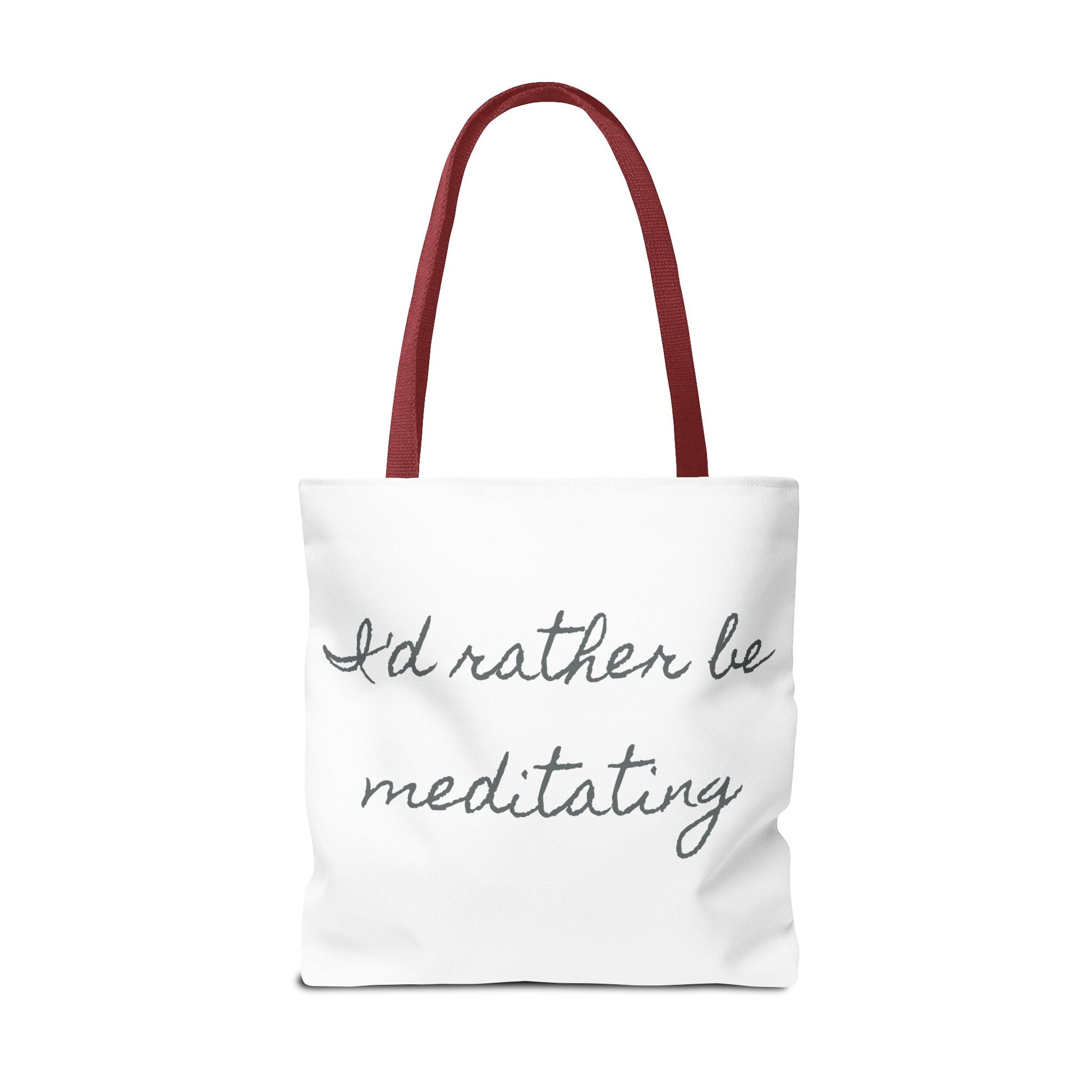 Stay zen and carry your essentials in style with this 'I'd Rather Be Meditating' Tote Bag. Perfect for those who love yoga, meditation, or mindfulness practices. Ideal for daily use, trips to the gym, the beach, or grocery shopping. Great for yoga enthusiasts, meditation practitioners, and those who value a peaceful mindset. A fitting gift for International Day of Yoga, World Meditation Day, or as a thoughtful present for a friend who needs a reminder to relax.