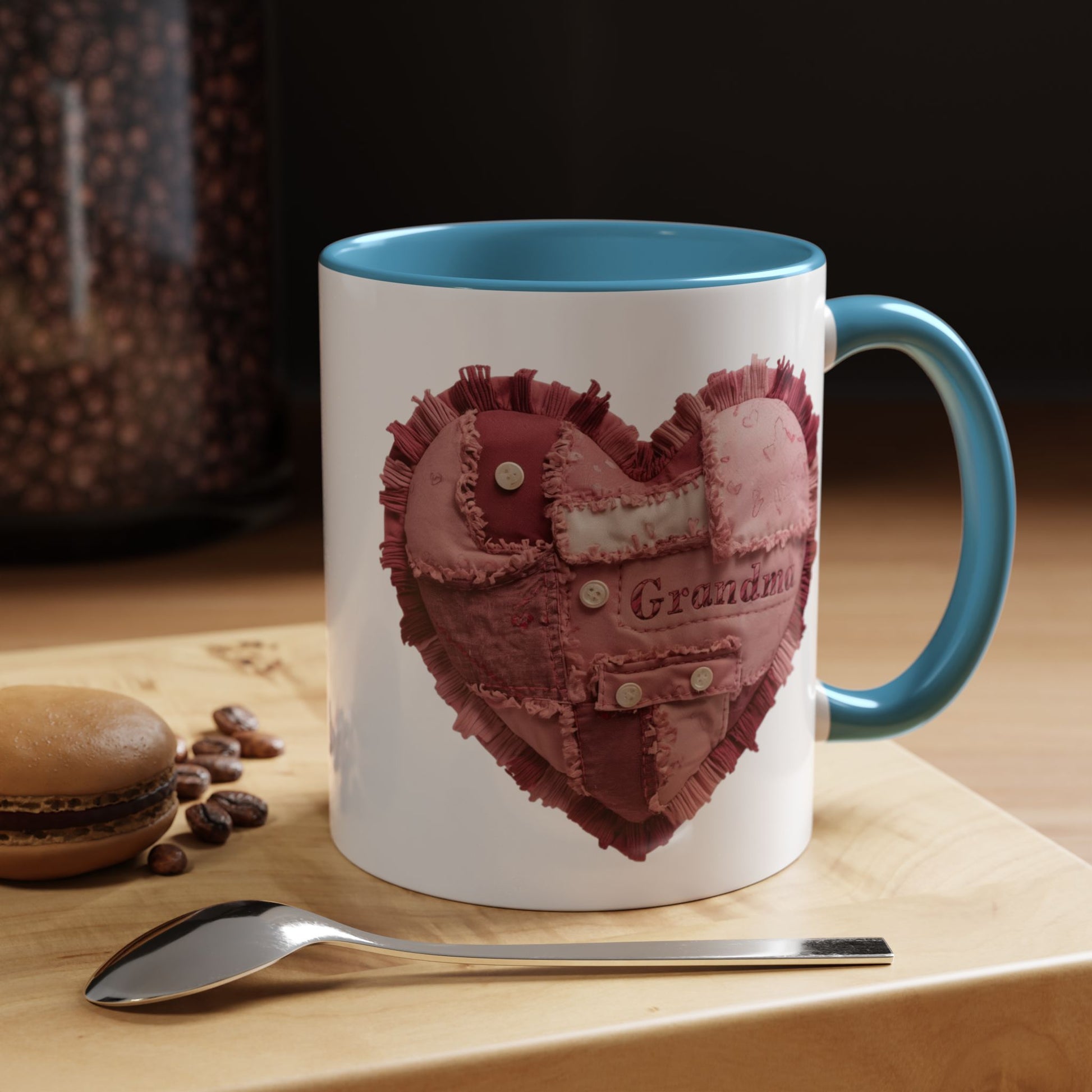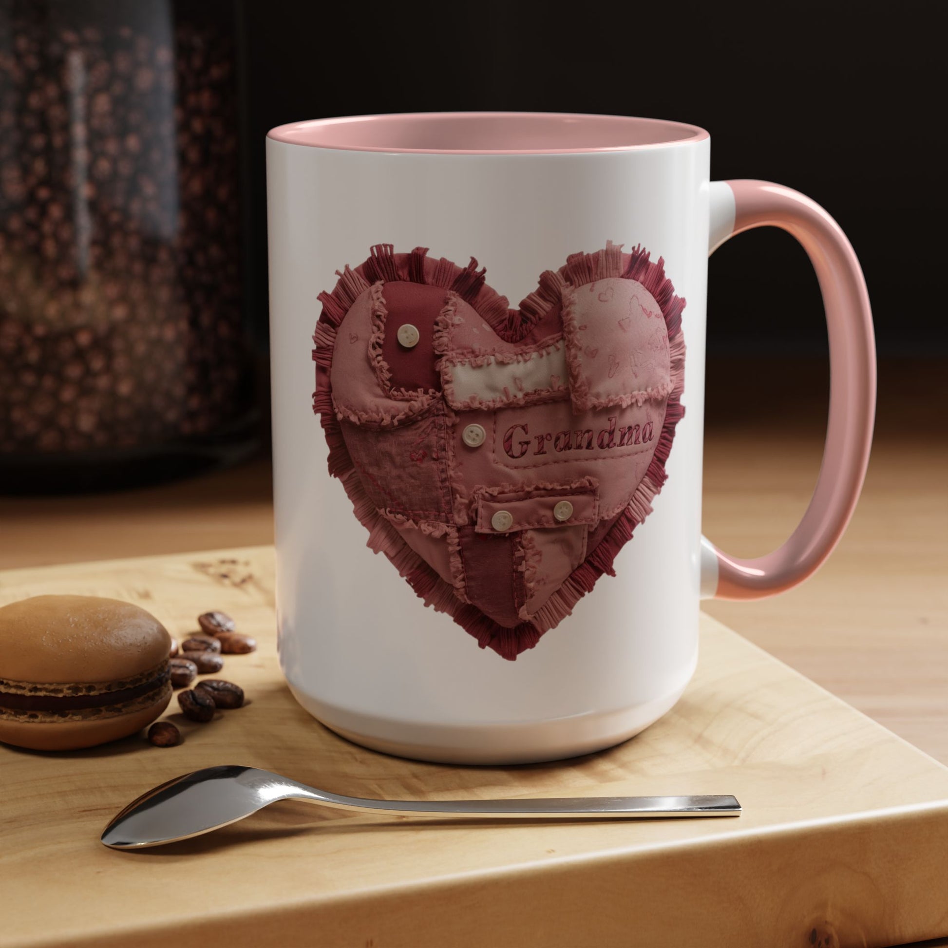 Pink Patchwork Heart Grandma Mug | Cozy Quilted Design | Holiday Gift for Grandma