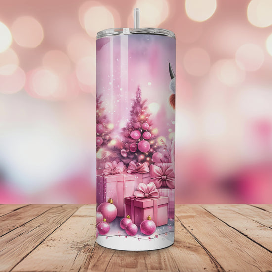 Winter Wonderland Pink & White Highland Cow SEAMLESS 20 Oz Skinny Tumbler